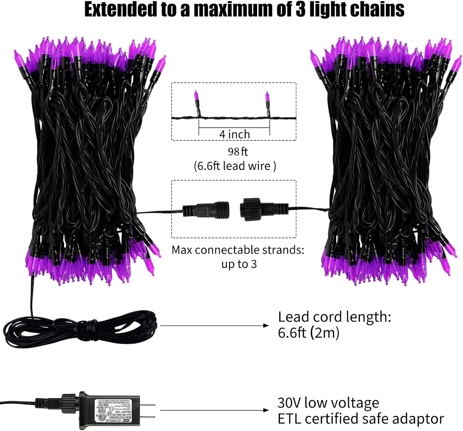 Minetom Halloween String Lights Outdoor, 98 Feet 300 Led Christmas Lights with 8 Lighting Modes for Halloween Party Christmas Xmas Tree Lights Decor(Purple)