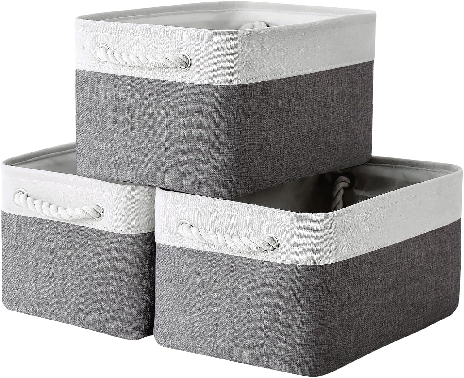 TheWarmHome Storage Basket for Organizing - 15.7x11.8x8.2 inch Large 3 Pack Collapsible Storage Bins for Shelves, Fabric Storage Cubes for Gift Closet Linen Organization (White & Grey)