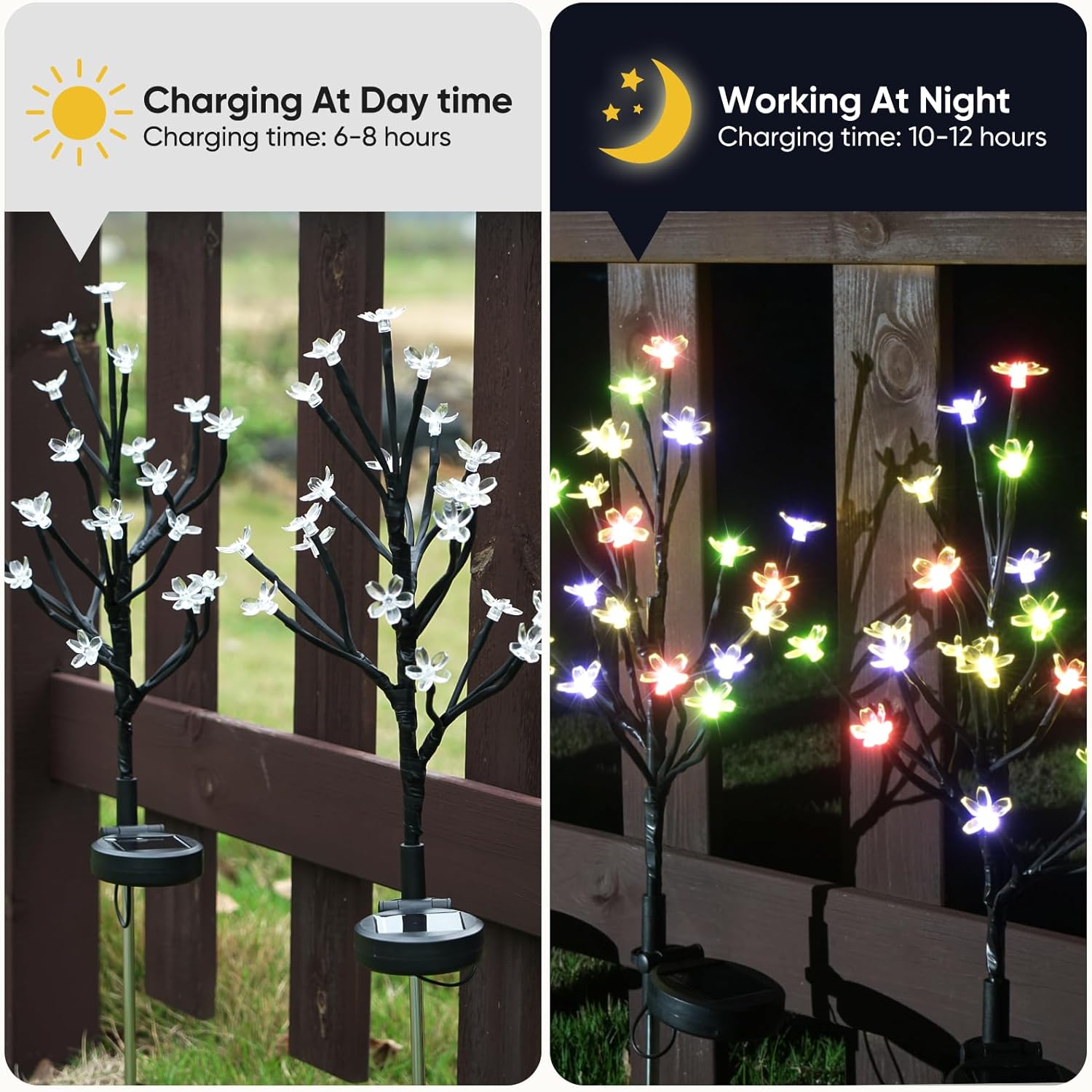 - 【Beautiful Packaging and Guaranteed Satisfaction】 The Solar Flowers Outdoor Waterproof Lights come in carefully designed packaging, making them a perfect gardening gifts for your loved ones, family, and friends. Each package contains 2 packs of multicolor cherry blossom lights that can create a romantic atmosphere for any occasion. We offer worry-free purchase and excellent customer service. If you have any questions or issues, please contact us and we will resolve them within 24 hours.