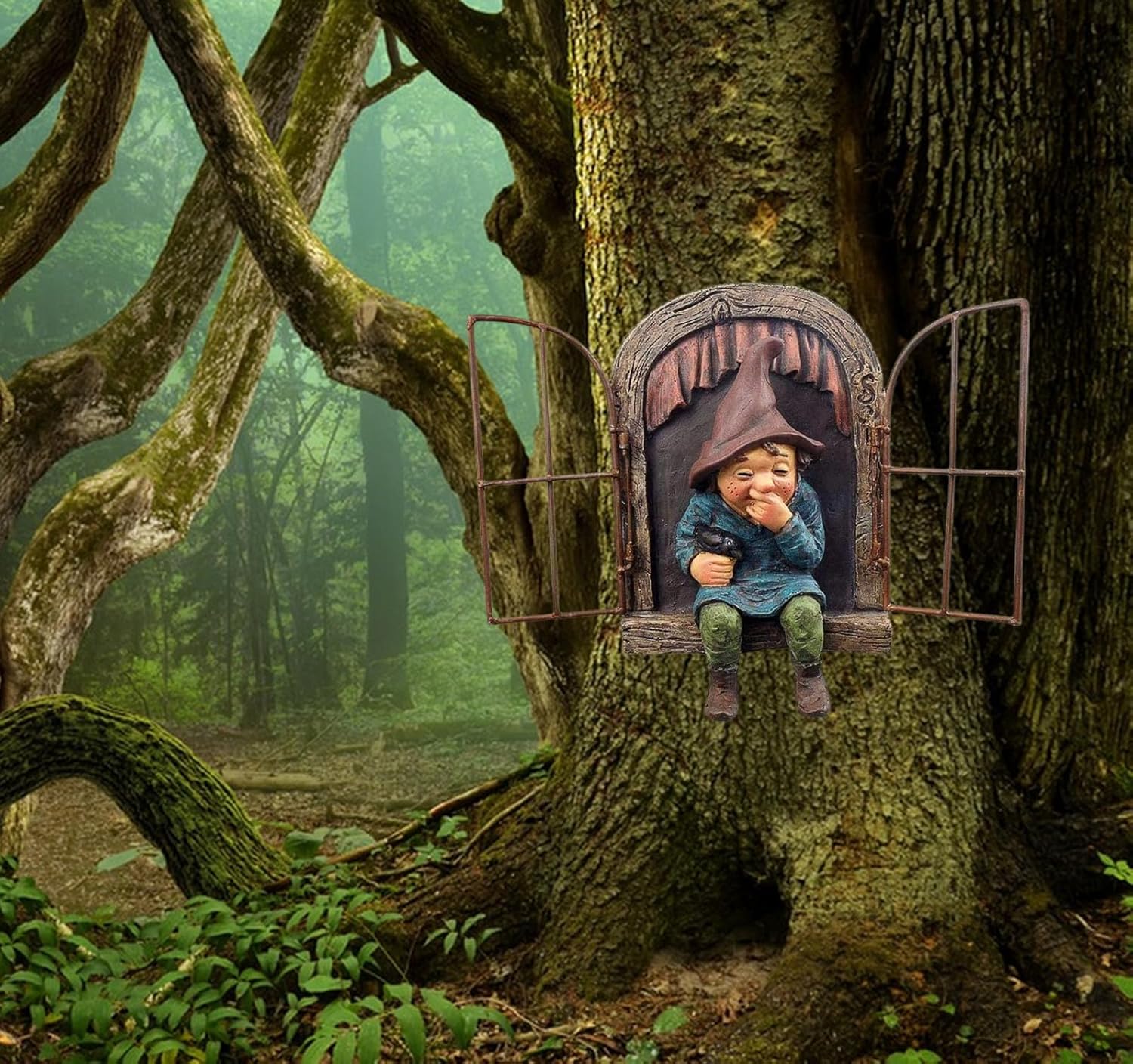 Whimsical Fairy Garden Gnome Statue, Tree Faces Decor Outdoor -5.9 Inch, Funny Garden Tree Decoration,Ideal Patio Yard Lawn Porch Decoration