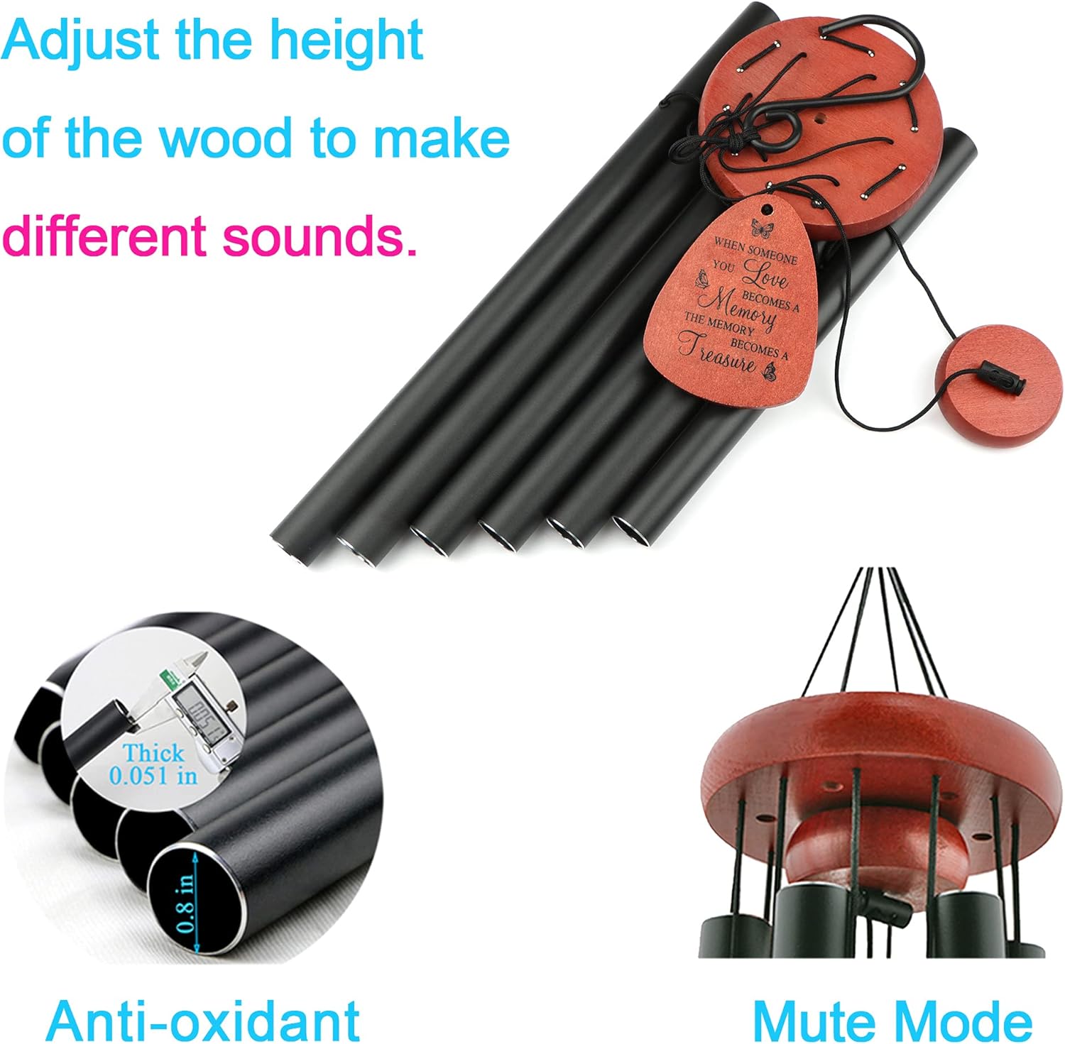 - Premium Quality Memorial Wind Chimes: Made with high-quality aluminum tubes and a corrosion-resistant black anodized finish, these memorial wind chimes produce clear, beautiful tones. The bell holder, striker, and wind catcher are made from durable beech wood, and the entire structure is supported by a strong, weather-resistant nylon cord for lasting outdoor use