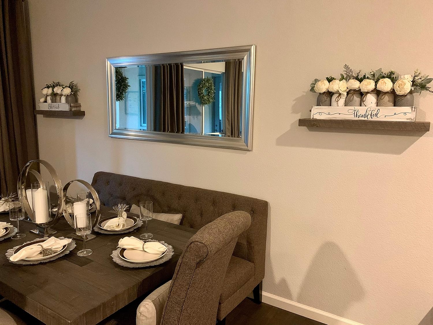 - Elevate Your Space with Rustic Charm: Transform your living room or any space with our large floating shelves for wall. These 24 inch floating shelf beauties, crafted from natural wood, add a touch of rustic warmth and provide ample display space for your cherished items. These are a great depth for photos, and organizing small areas. NOTE: You need to be able to hit one wood stud toward the center of where you want to hang the shelf.