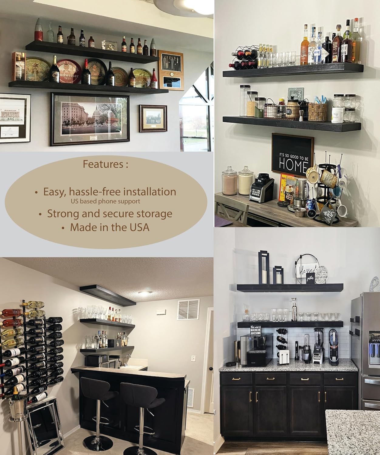 - Elevate Your Space with Rustic Charm: Transform your living room or any space with our large floating shelves for wall. These 60 inch floating shelf beauties, crafted from natural wood, add a touch of rustic warmth and provide ample display space for your cherished items.