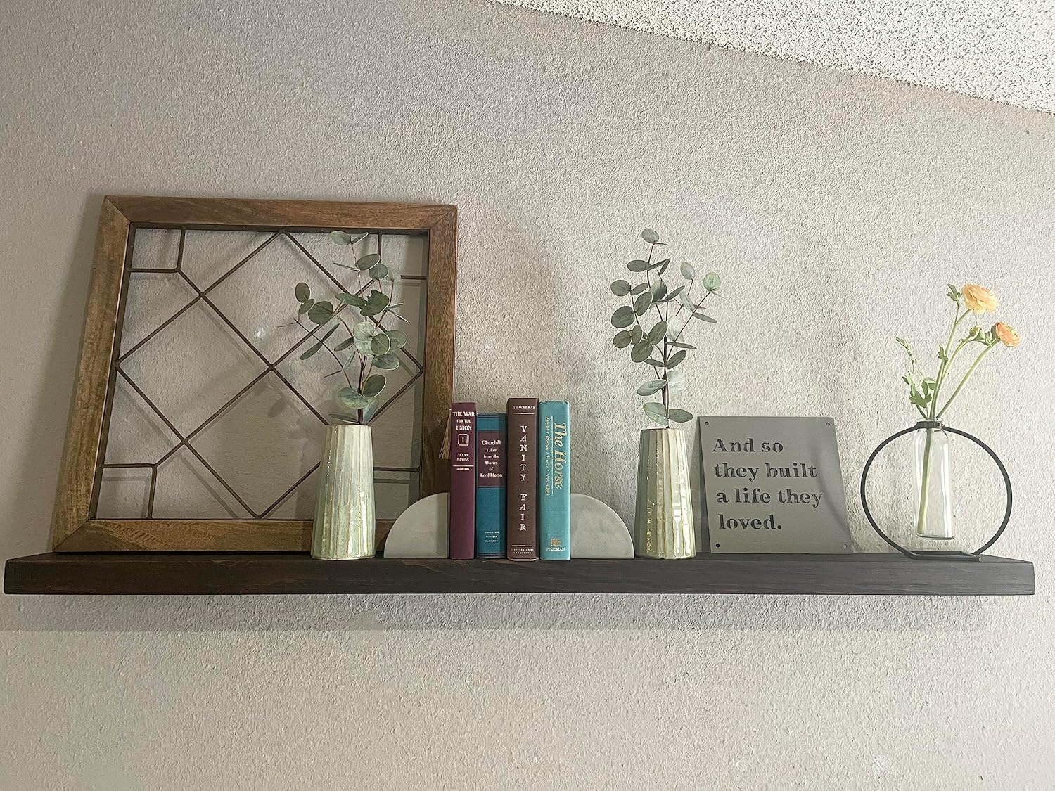 - Elevate Your Space with Rustic Charm: Transform your living room or any space with our large floating shelves for wall. These 48 inch floating shelf beauties, crafted from natural wood, add a touch of rustic warmth and provide ample display space for your cherished items.