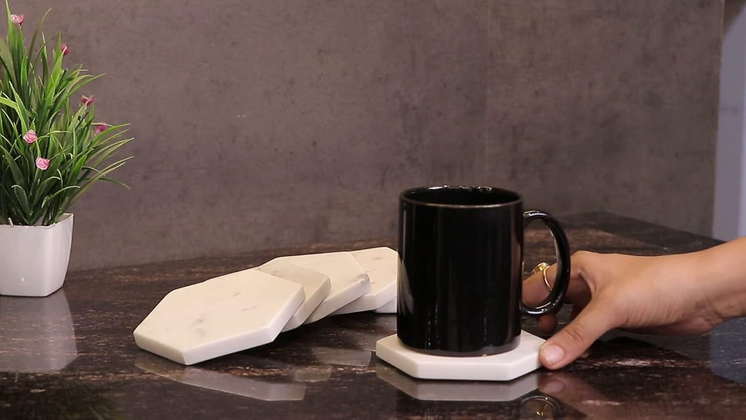 - PROTECT YOUR FURNITURE: Tired of cleaning smudges off your precious furniture, these marble coasters keep the stains/ water rings/ moisture away keeping your dining table or your kitchen countertop clean. Enjoy your favourite drinks, cocktails, margarita on your cherished table or desk as these coasters donβt mess up the table.