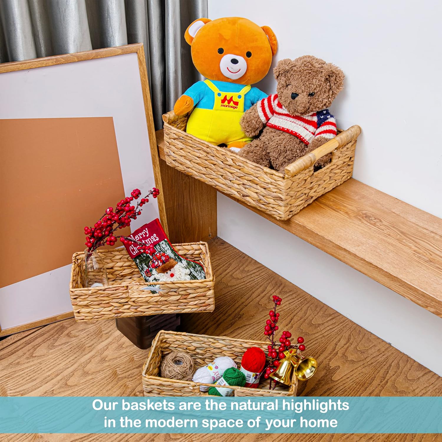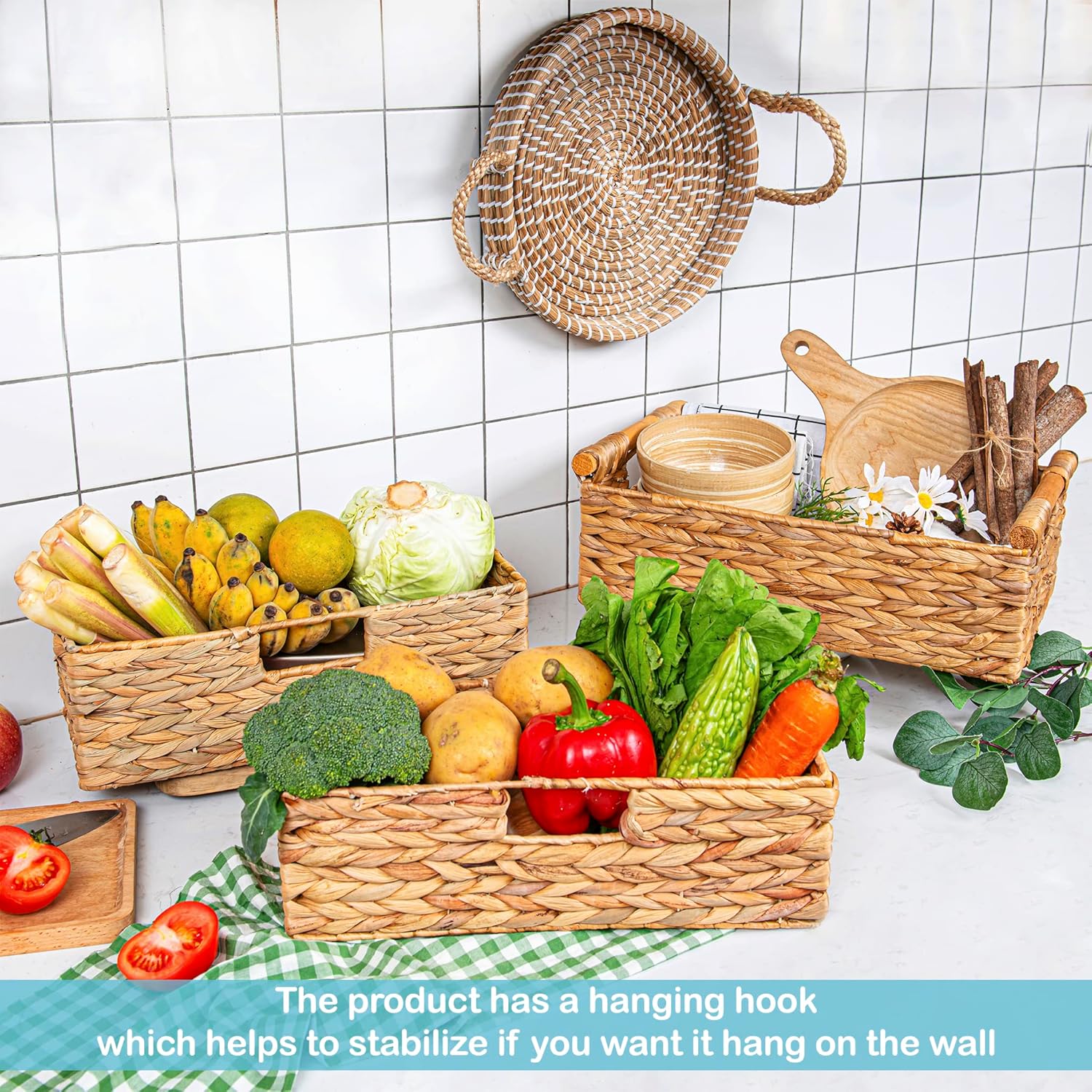 - ā Decorative Wicker Baskets: Natural water hyacinth basket is an easy and affordable way to change the style of your home. With their natural design, the wicker basket makes nice neutral backdrops and can brighten your day as well as impress your guests.