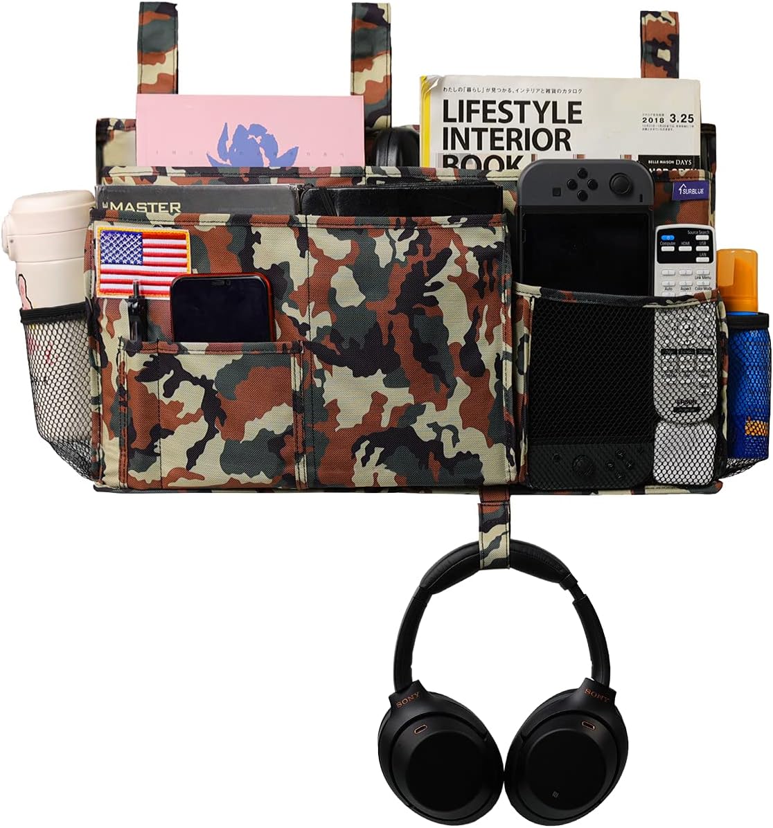 - Space Saving: The large bedside caddy is perfect for students to hang on the dorm bed to store books, magazines, laptop, notebooks, pens, cellphones, water bottles, and some snacks and drinks. You can put kinds of things in it, and make your bed clean and tidy! You can't need to leave your bed again!