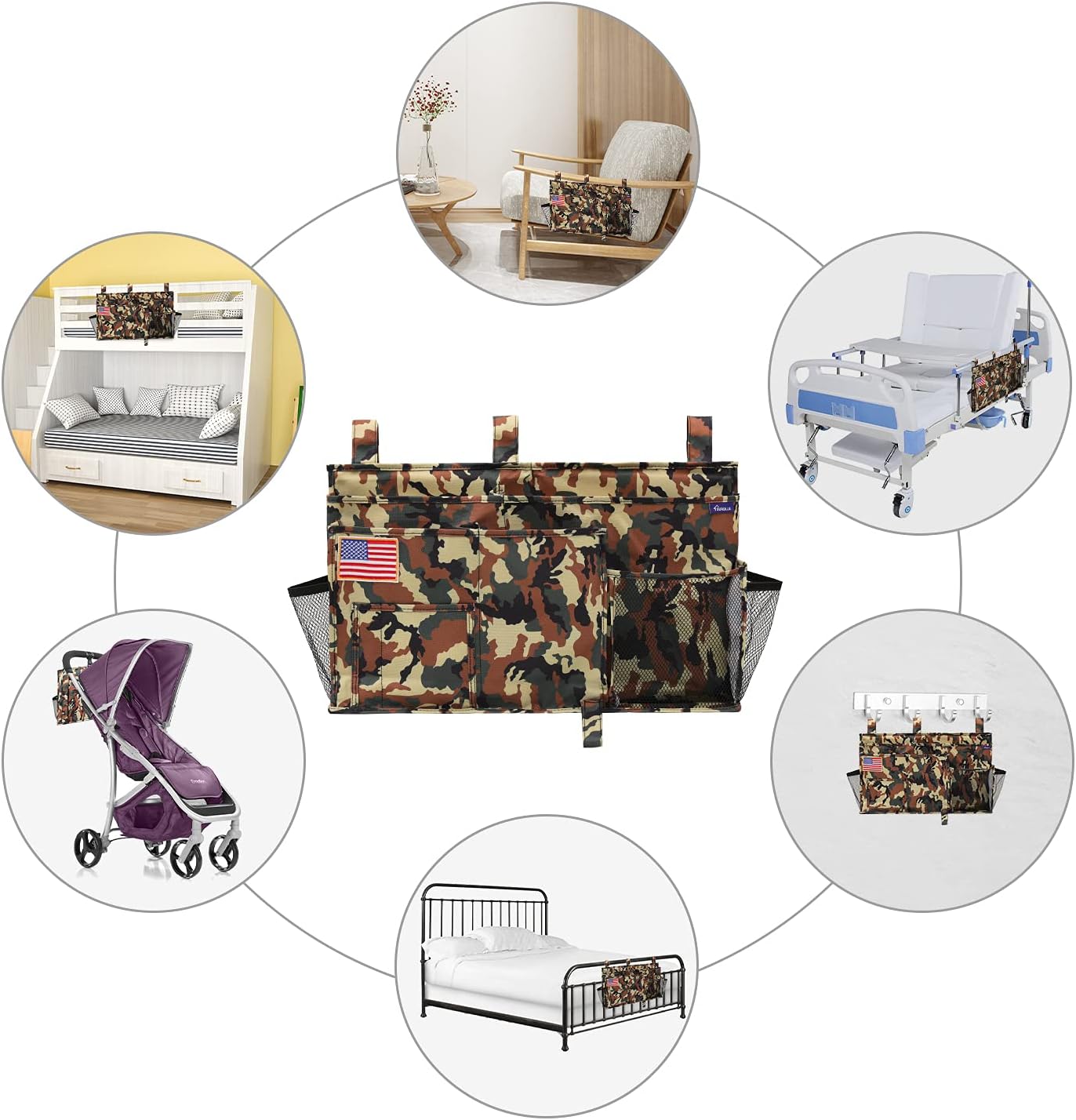 - Multi-Purpose: The bedside organizer is suitable for kid beds, top bunk beds, chair arms, and baby strollers, a good choice for RV, home, hospital, living room, or college dorm.