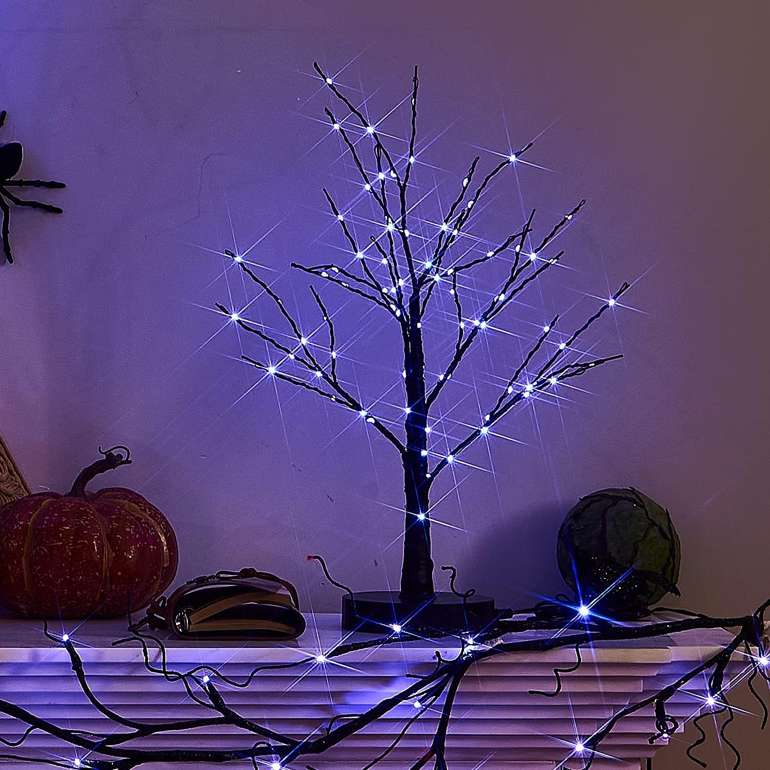 - 🎃 HALLOWEEN BLACK TREE: 2024 new designed table tree lights,80 purple LED fairy lights wrapped on the branches,is best decoration for Halloween party.