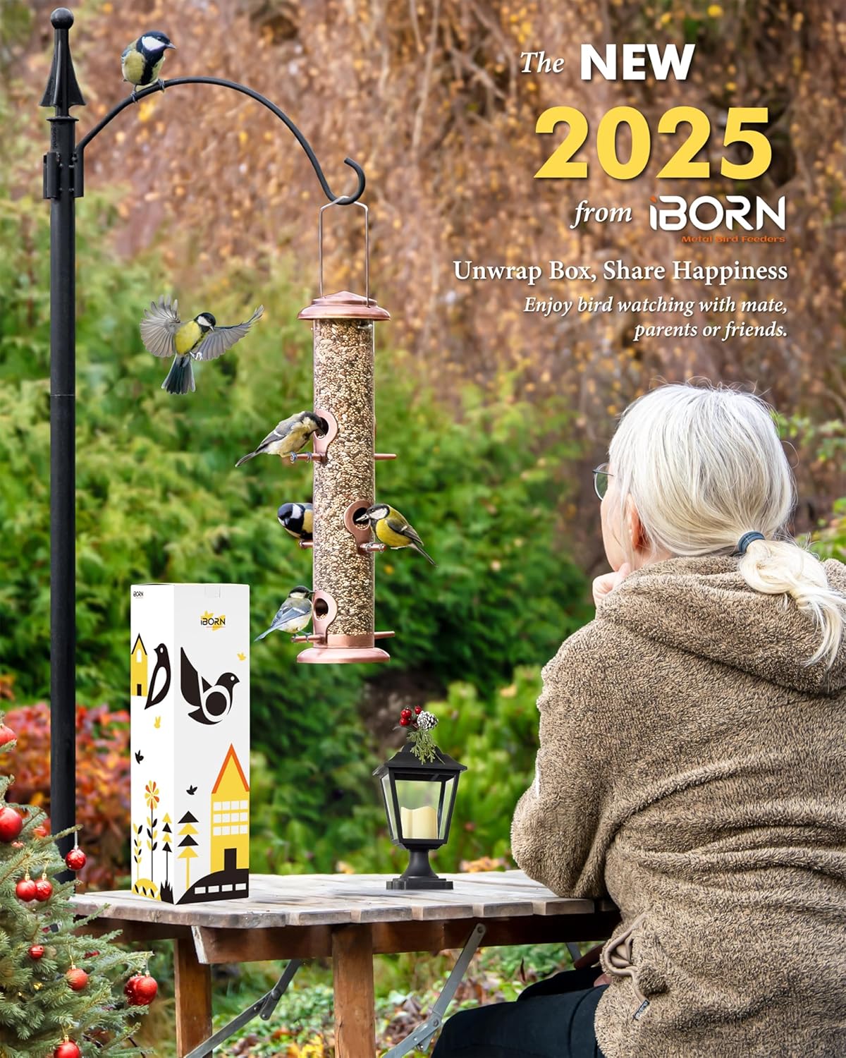 iBorn Metal Bird Feeders Brushed Copper Wild Bird Feeder for Outdoors Hanging All Metal Brushed Copper Finishing 14 Inch 6 Port(Seed is not Included)