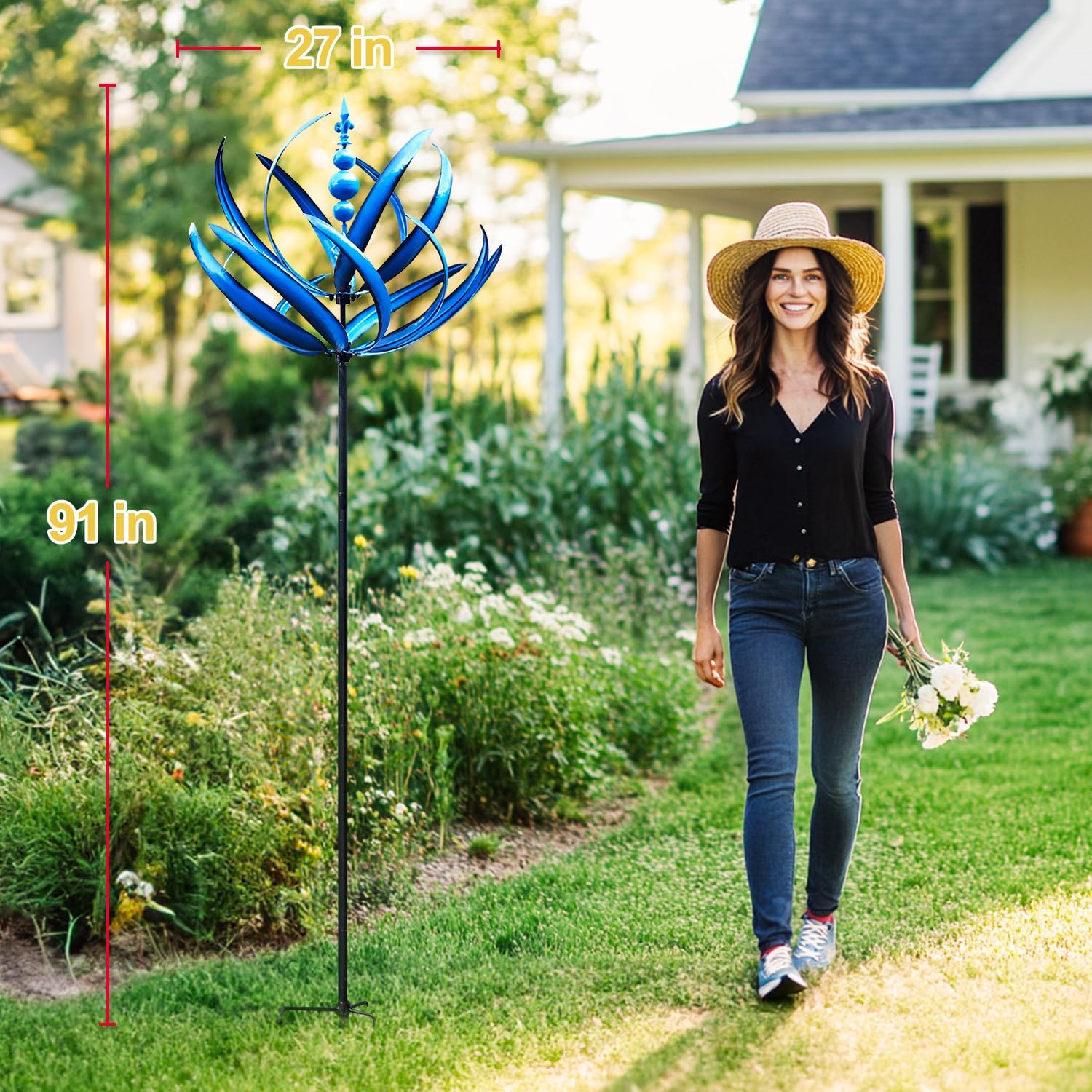 - 【The Perfect Garden Decorations】Our Metal garden yard Spinner is optimum for Patio, Porch, Path, Pool, Yard, Garden, Garage, etc. It can be a perfect choice for both your garden décor or perfect as a remembrance gift.