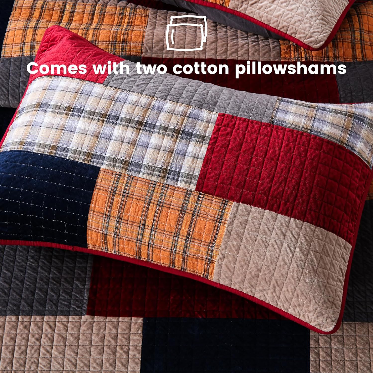 Secgo Velvet Queen Comforter Set for Bed - 100% Cotton Quilts Queen Size, Red, Black Bedspreads (90 * 98 Inch) with 2 Pillow Shams, Patchwork Reversible Lightweight Bedding