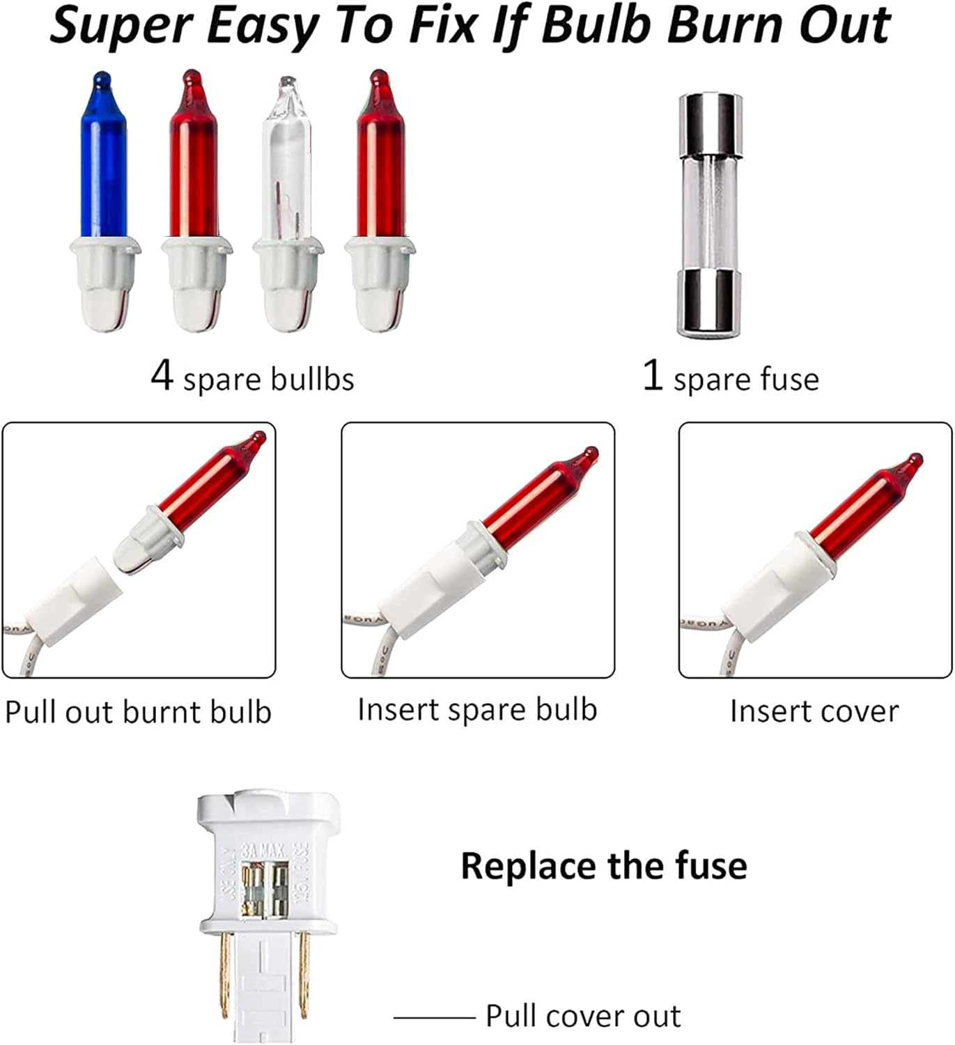 Dazzle Bright 4th of July Lights, 20FT 100 Count Independence Day Mini String Lights Plug in Waterproof Christmas for Outdoor Indoor Home Party Decorations, Red Blue and White