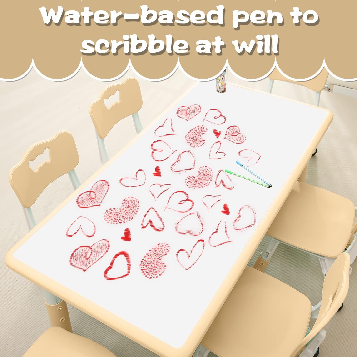 - Best Gift:Kids Desk and Chair Set Includes 1 Desk and 6 Chairs. The installation process is very simple (an electric screwdriver is recommended) and can be done easily even in winter.