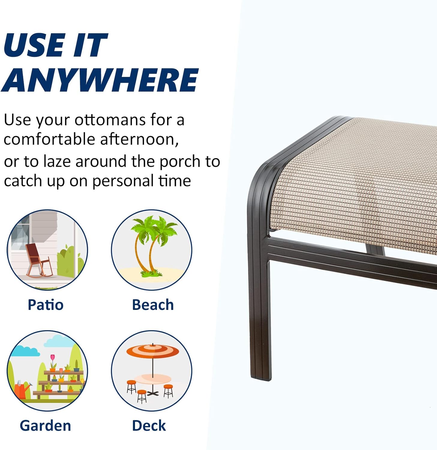 Outdoor Patio Ottoman Seat Textilene Portable Metal Footstool Portable Footrest Patio Chairs 2 Set Beige