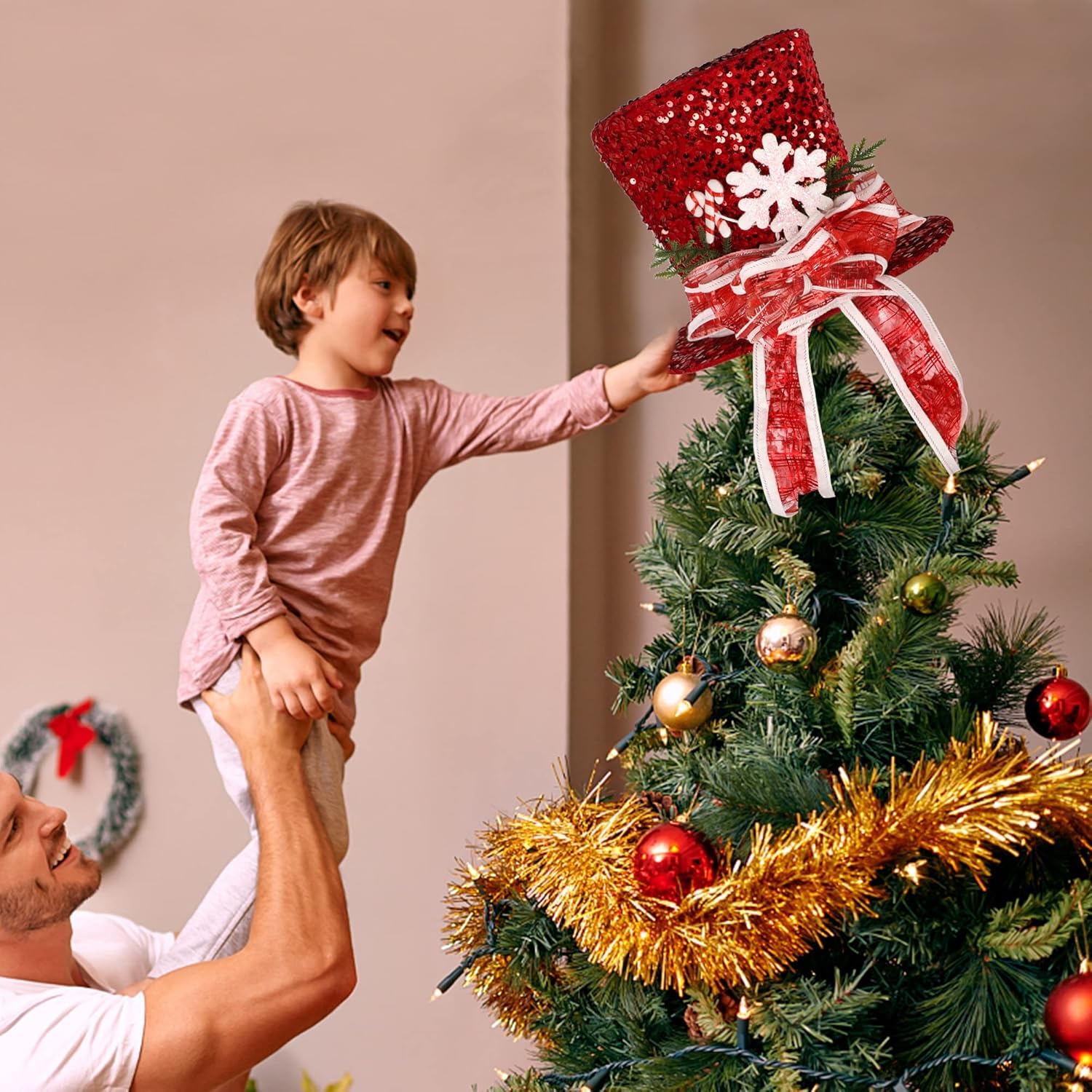 - Christmas Tree Topper: Prsildan large Xmas tree topper hat is a perfect partner for Christmas tree to add a nice touch to your Xmas decor. This specially designed top hat will make your Christmas tree look more attractive.