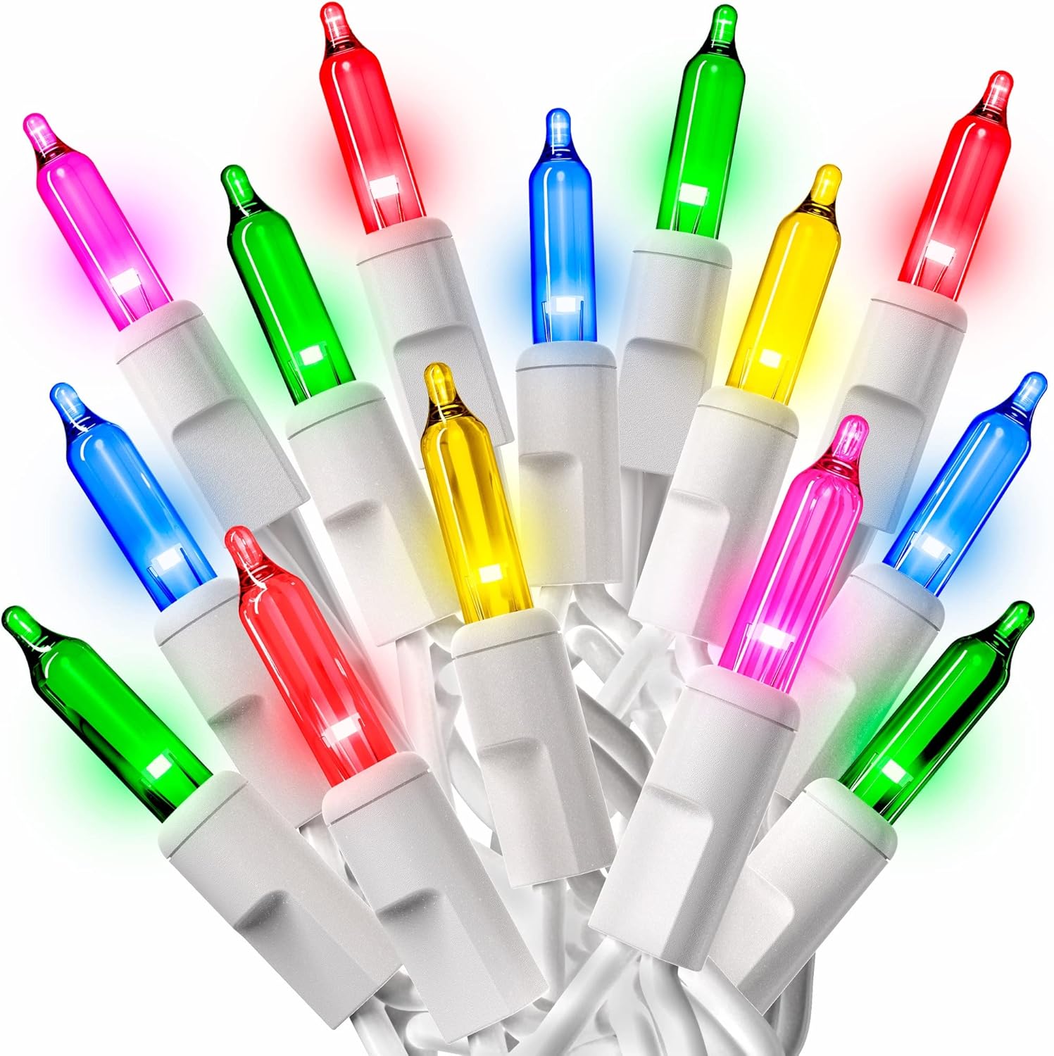 PREXTEX Bright & Colorful Christmas Lights (60 Feet, 300 Lights) - Fall Decor & Christmas Tree Lights with White Wire - Indoor/Outdoor String Lights – Multi-Color Twinkle Lights
