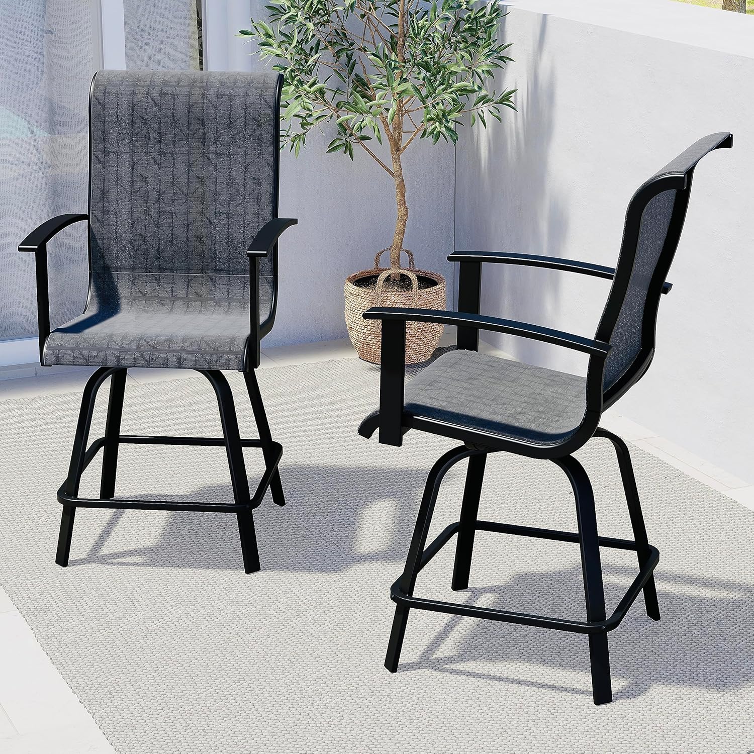Grand patio Counter Height Outdoor Swivel Bar Stools Set of 2, Patio Bar Chairs with Arms Backs for Porch Balcony, Poolside, Deck (Black&Grey Plaid, 2PC)