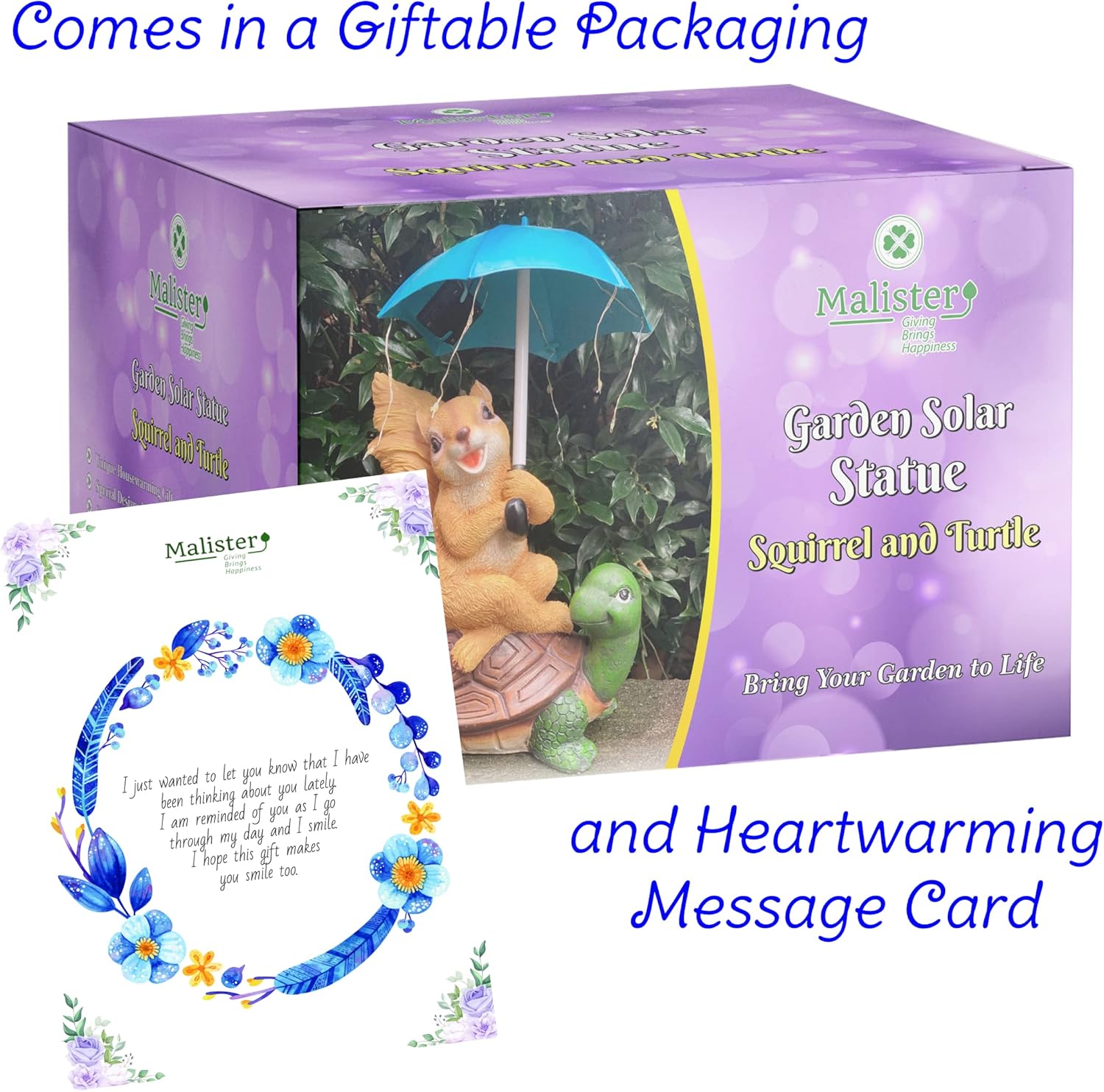 - [ BEST GIFT ]: Are you looking for a great gift for your love ones? Look no further for this wonderful Garden Squirrel and Turtle Figurines Decoration, including our special message card. The Turtle Statues can be great housewarming garden gifts, turtle gifts that will leave your friends or family speechless, especially if they live long-distance.