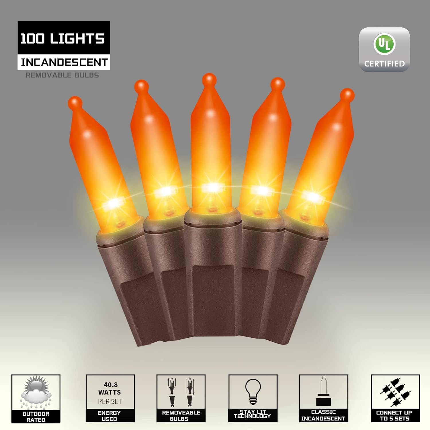 - Safty and Easily: High quality UL certified products ensure the safety of you and your family, Decorate with 100 halloween incandescent mini lights with brown wire will give a soft festive feel to your Christmas.