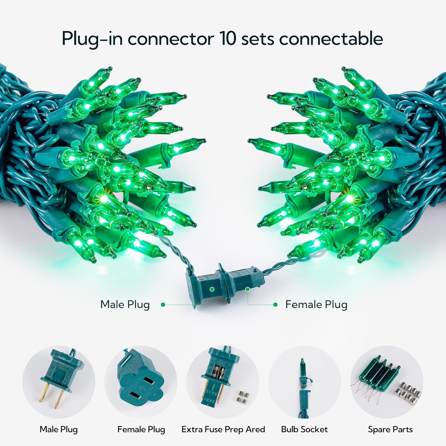 - π50 Vibrant Lights with Perfect After Sale :Old-fashion green incandescent Christmas light set, creates a warm and festive atmosphere, surely lights up your house, let your home become a fantastic sight to behold in your neighborhood! With green wire, ideal for a tree, bedroom, patio decorations!If you have any reason you don't enjoy it, just send us a message and we will refund 100% or replace your purchase.