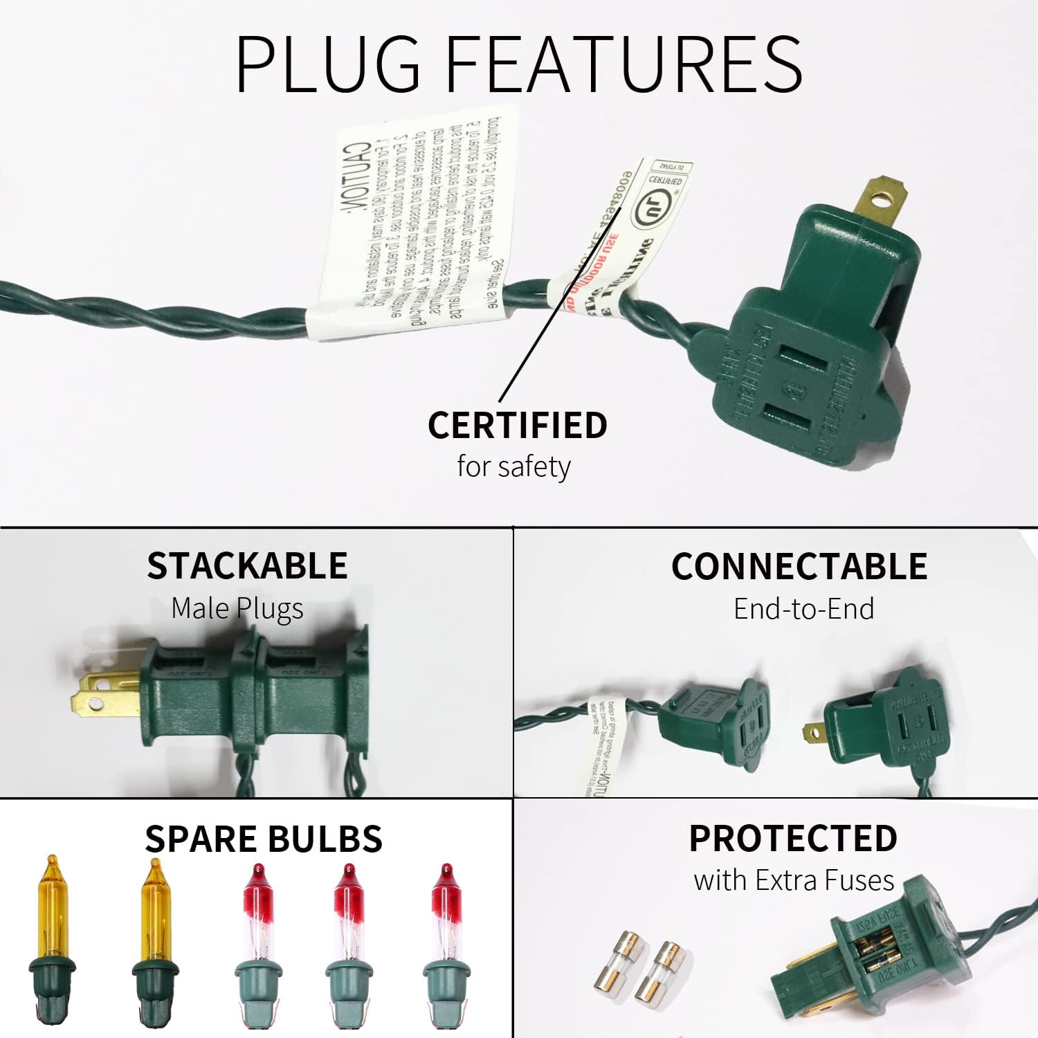 - Safty and Easily: High quality UL certified products ensure the safety of you and your family, Decorate with 150 yellow incandescent mini lights with green wire will give a soft festive feel to your Christmas.