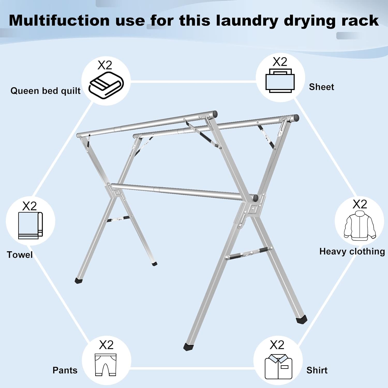- 👗Sturdy & Heavy-duty - Laundry drying rack outdoor is made of stainless steel, rust-proof and durable. It is strong heavy-duty to hold blankets, sheets, jeans, sweaters, and not wobbly at all when placed outside, even meets a strong wind.