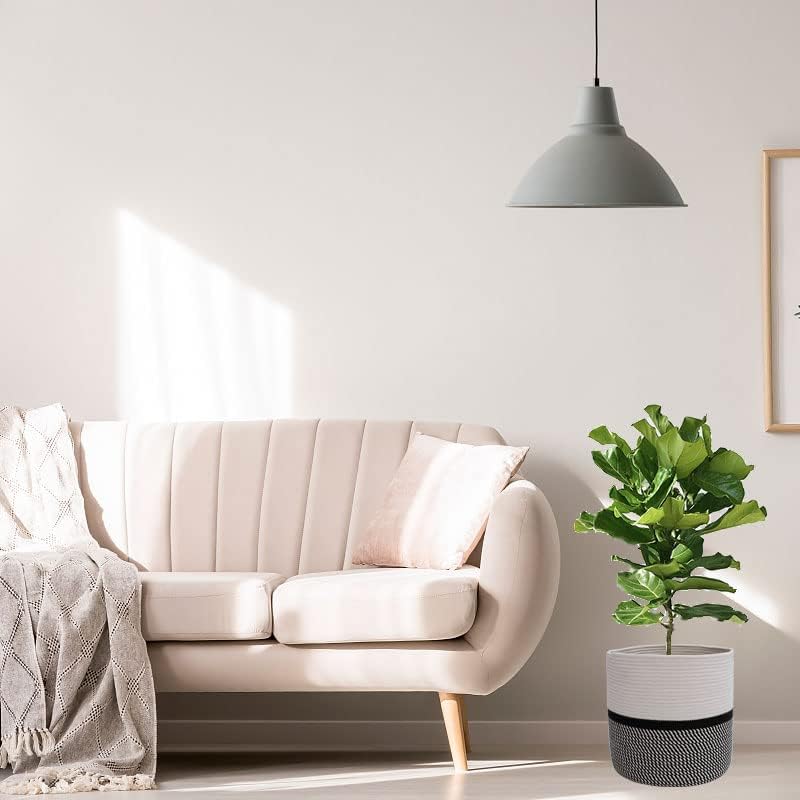 Cotton Rope Plant Basket Modern Woven Basket for 10" Flower Pot Floor Indoor Planters,Storage Organizer Toys Rustic Home Decor,Beige 11"x 11"