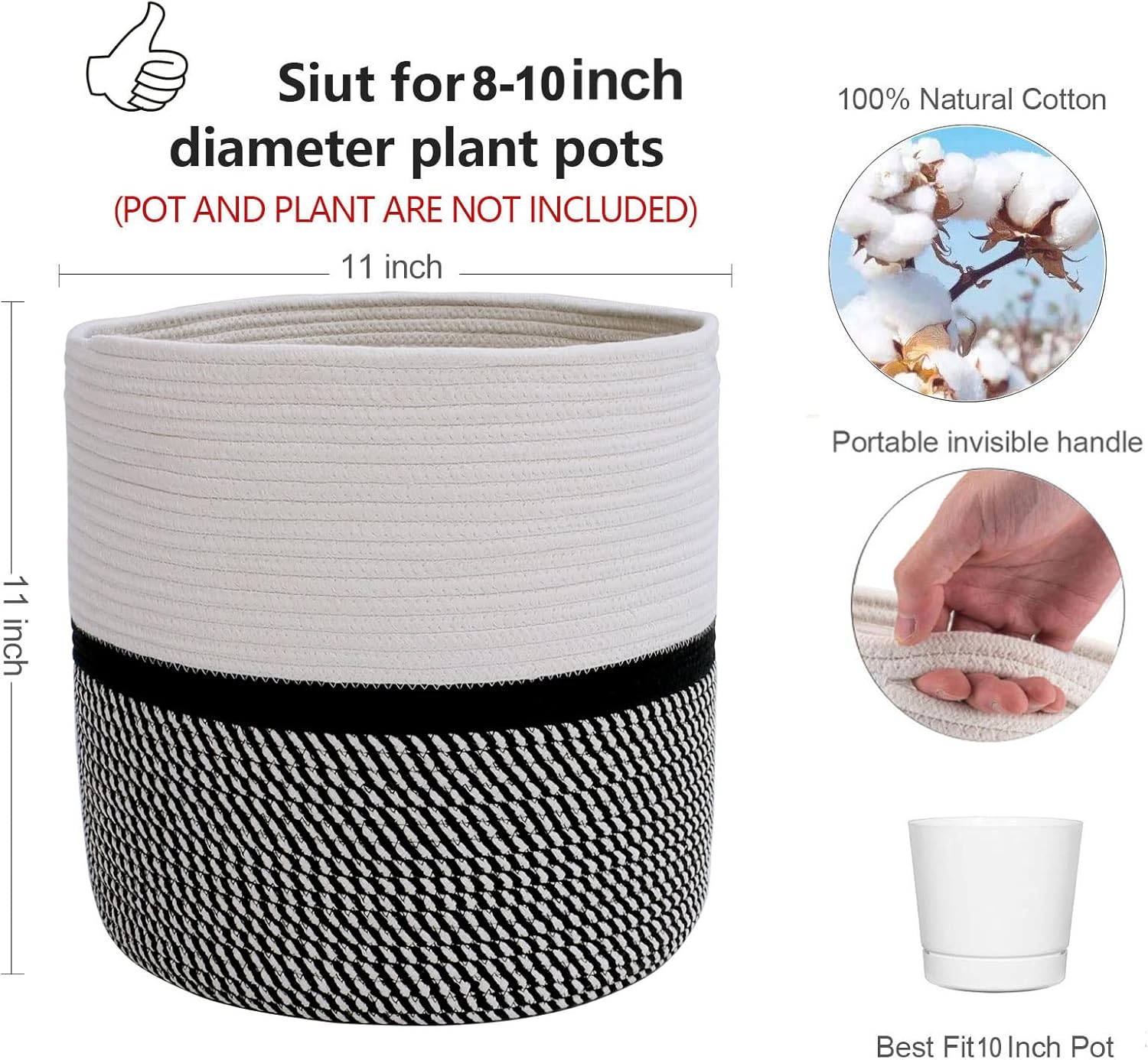 - 🌻【FITS 7"-10" PLANT POT】BEST fit 8-10" pot, If your favorite plants are using ordinary plastic flower pots, ceramic planter or grow bags, cotton rope pot covers will provide unique charm