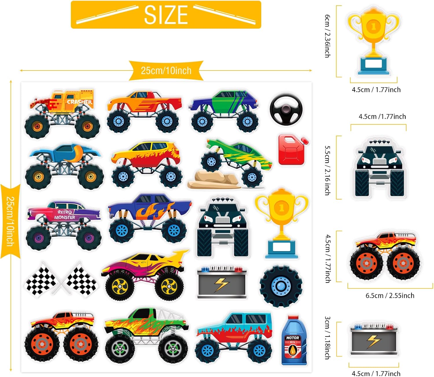 - Wide range of uses: truck thick gel clings is very suitable for pasting on car windows, refrigerators, walls, classrooms, daycares, bedrooms, game rooms, etc.! These gel clings can also decorate your birthday parties, family gatherings, anniversaries Or truck-themed parties, etc.