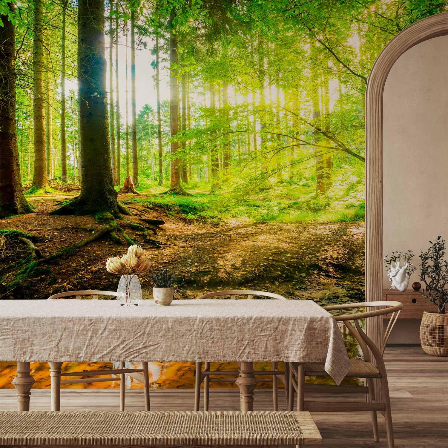 artgeist Wall Mural Forest Landscape 216x98 in - XXL Non-Woven Corner Wallpaper Fleece Angle Wall Decor Photo Print Picture Image Design Modern Green Sun Nature Tree c-B-10040-a-a
