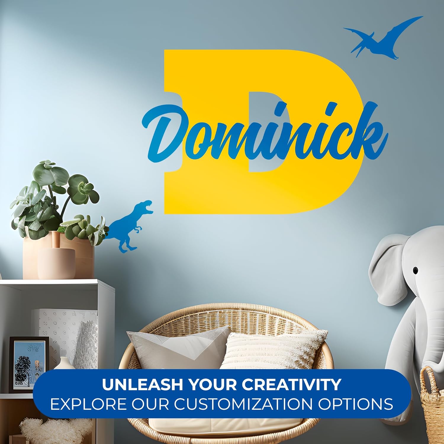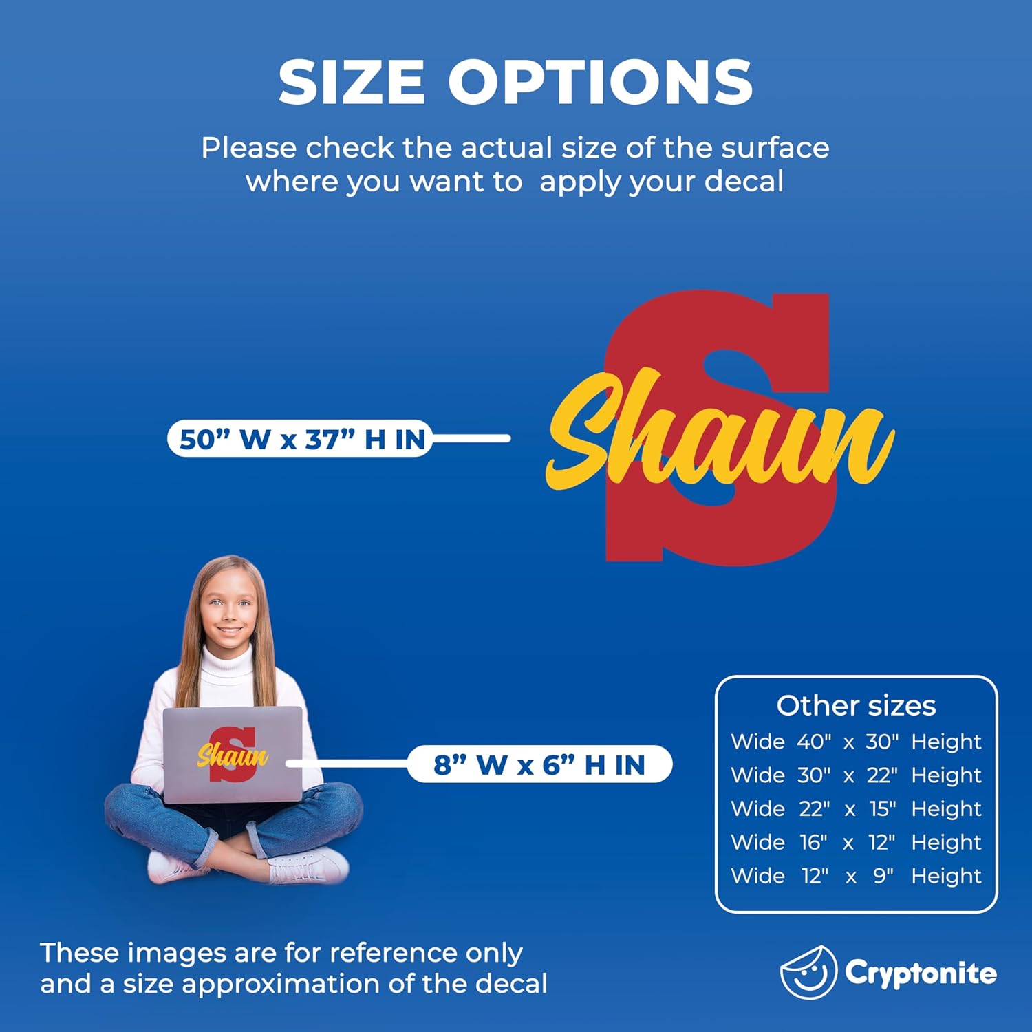 CRYPTONITE Multiple Font Personalized Name & Initial Vinyl Wall Decals I Nursery Wall Decal for Baby Boy & Girl Decoration I Stickers for Kids I Multi-Size with Glitter Optional