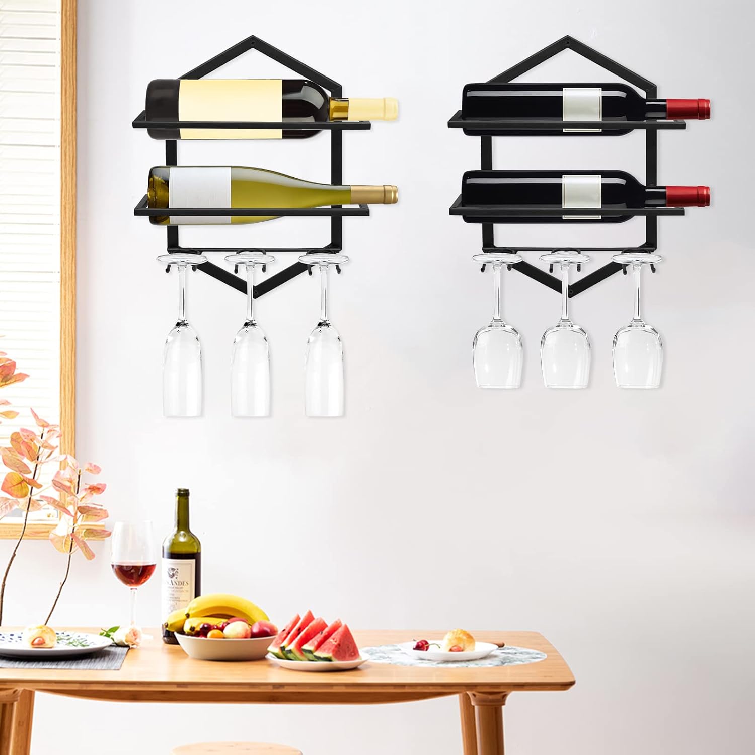 - 【2-IN-1 Wine Display Rack】Our wall mounted wine bottle holder presents your precious wine bottles, goblets in a stylish way, shows a unique artistic atmosphere. Wine rack holds 2 bottles of wine, or champagne, and 3-6 goblets.