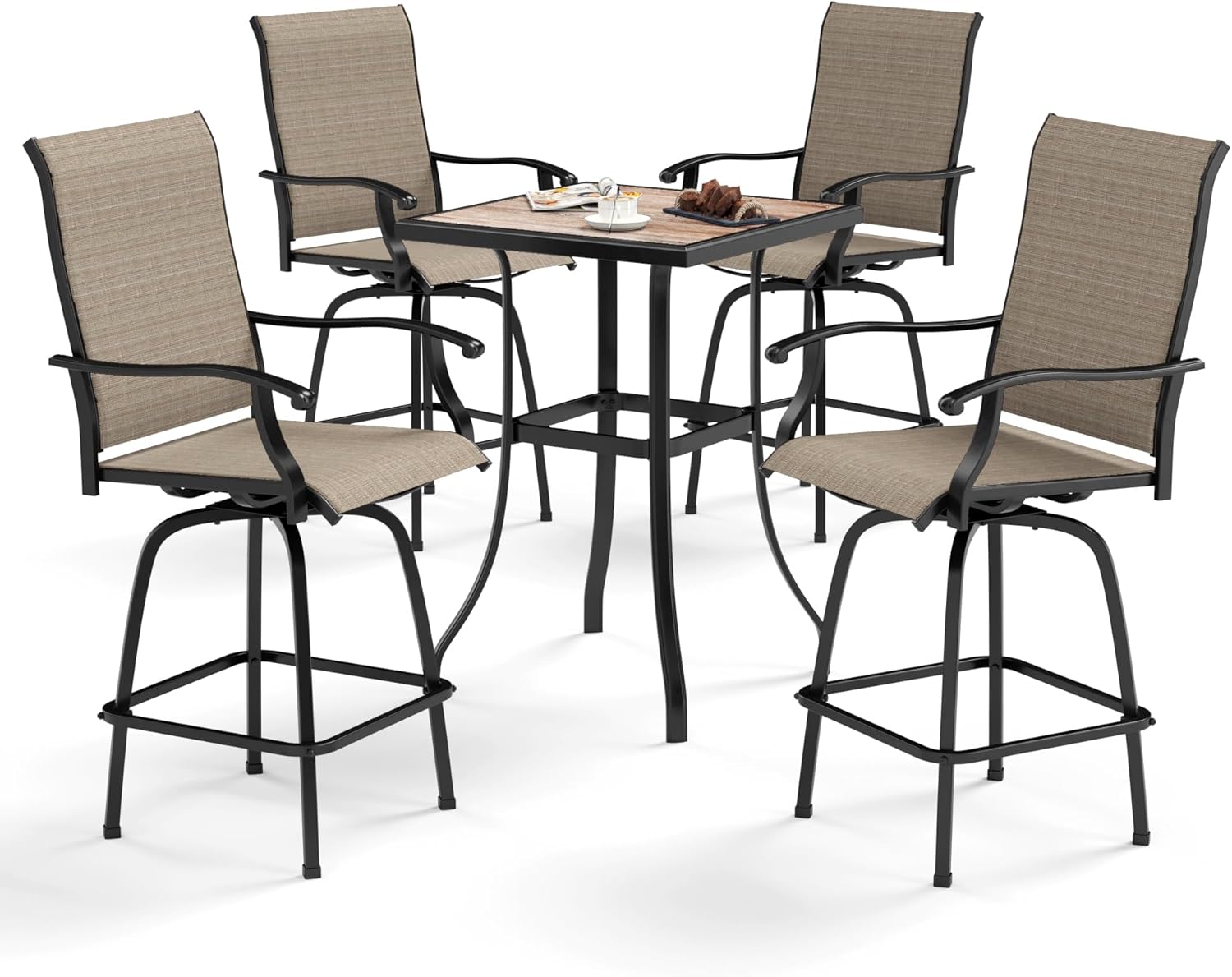 Sophia & William Outdoor Bar Set, Patio Bar Table and Chairs Set, Bar Height Patio Set - 4 x Swivel Bar Chairs(Brown), 1 x Square Bar Table(Wood-Like)