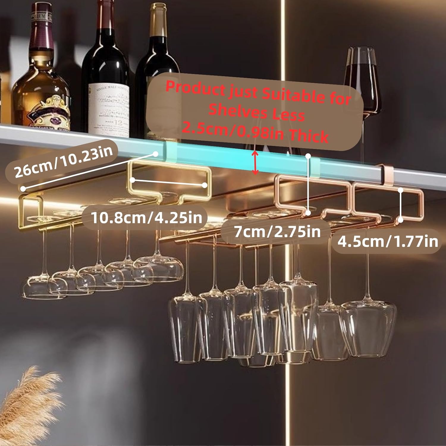 - Affordable Gift For Wine Lovers:this glasses storage holder rack provides a decent holding point and is very stylish.The sturdy materials ensure good strength and longevity. Get more than 2 PCS now for you or your friends who love drinking.Please Measure The Thickness Of The Board Of The Shelf Or Cabinet Before Purchase