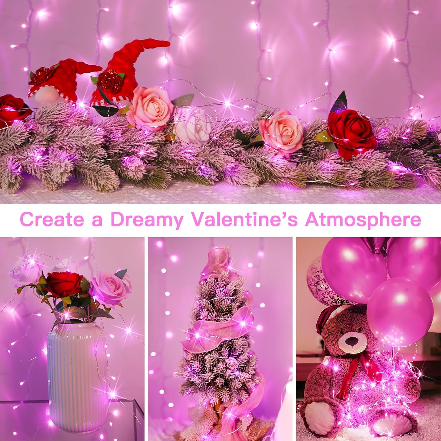 - 💗ILLUMINATE LOVE WITH PINK LIGHTS:Pink valentines lights serve as a enchanting and romantic embellishment for Valentine's Day. Whether delicately draped around a room, elegantly adorning a dinner setting, or framing a cherished moment, these fairy lights add a touch of magic to the celebration.