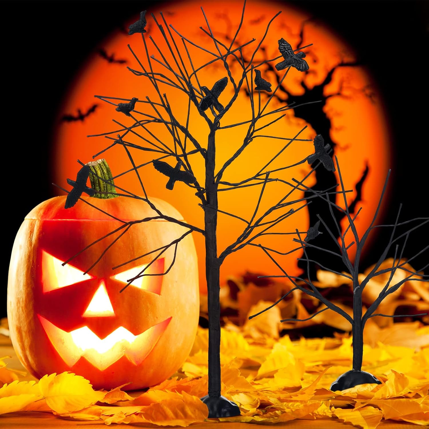 - Package Include: you will receive 2 pieces of Halloween tree decorations, 1 piece of larger tree with 7 pieces of fake crows and a smaller bare tree, this set can fulfill your decorative needs for Halloween