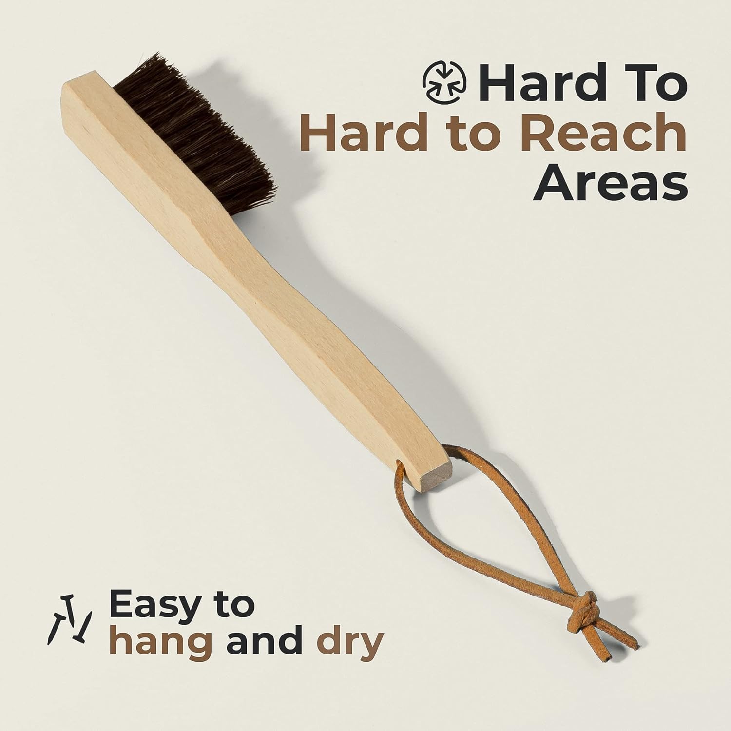 - ā Remove Stains From Your Favorite Leather Items: Apply some stain solution on your couch, car seat, shoes, purse, or jacket, work into the leather with our stain removal brush and make stubborn oil, grass, or mud stains history. Hang the brush from the leather loop and let it dry before the next use.