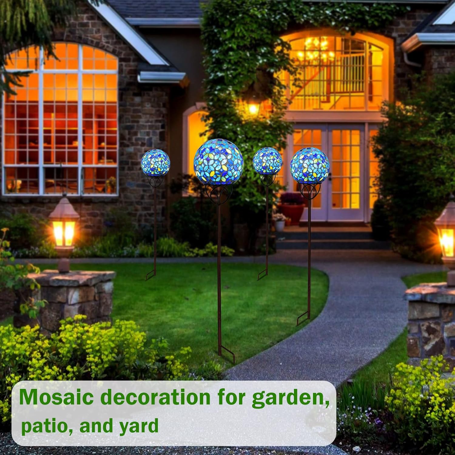 Solar Lights Outdoor Decorative, Solar Gazing Ball Mosaic Garden Stakes Decorative Waterproof Outdoor Lights for Pathway Yard Lawn Decoration (Blue)