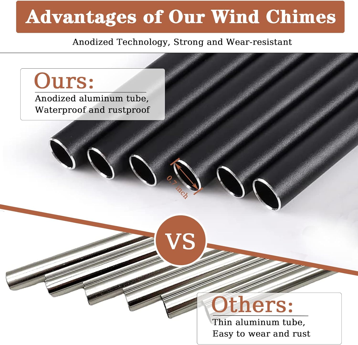 - Better Alternative than Flowers: Flowers will fade, but the memorial gift can last a long time. Compared to others' inferior wood planks, our memorial wind chime is made of high-quality pine wood which is sustainable and recyclable. The 6 black thickened aluminum tubes are made of anodized technology to make them lasting, waterproof, wear-resistant, and can withstand all kinds of bad weather.