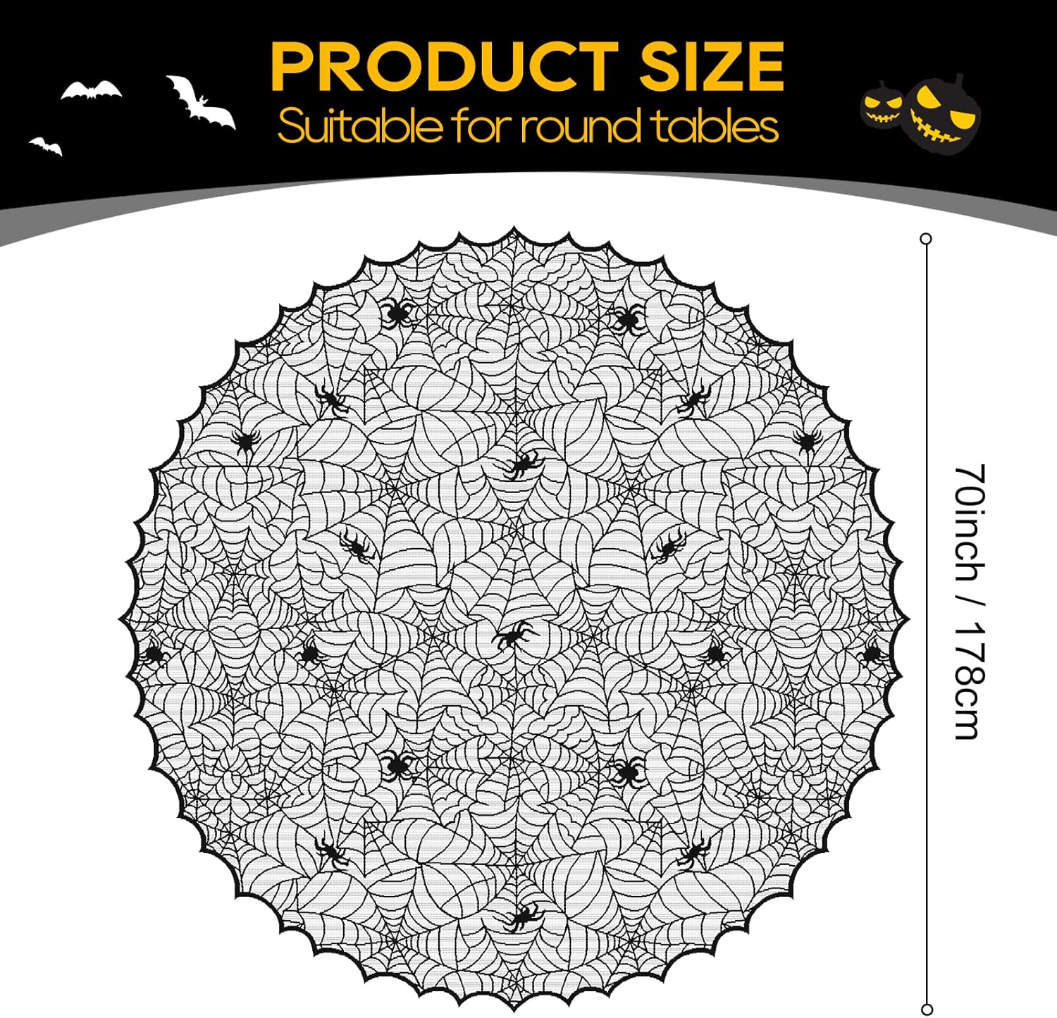 eZAKKA Round Halloween Tablecloth, 70 Inch Spider Webs Tablecloths Black Tablecloth Lace Fabric Table Cloths Spooky Table Cover for Parties Gothic Halloween Home Decorations