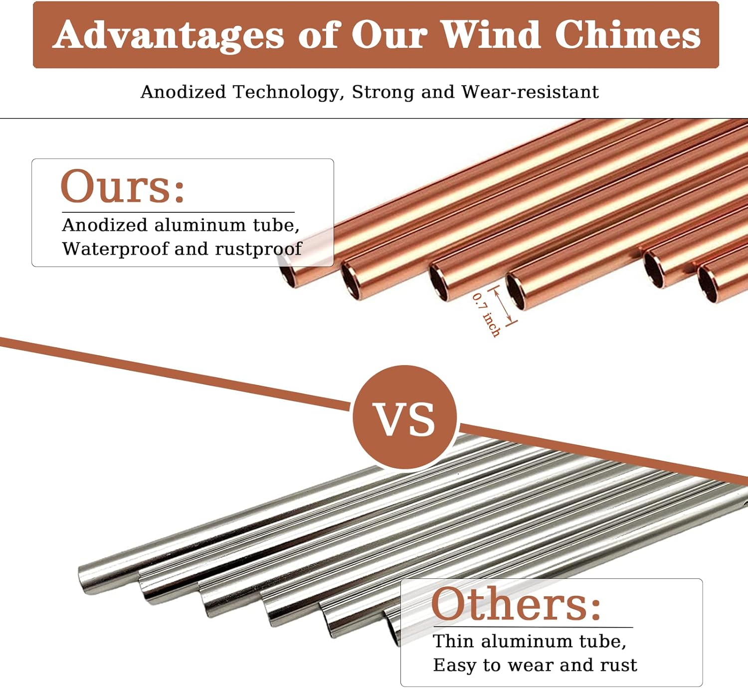 - Better Alternative than Flowers: Flowers will fade, but the memorial gift can last a long time. Compared to others' inferior wood planks, our memorial wind chime is made of high-quality pine wood which is sustainable and recyclable. The 6 golden thickened aluminum tubes are made of anodized technology to make them lasting, waterproof, wear-resistant, and can withstand all kinds of bad weather.