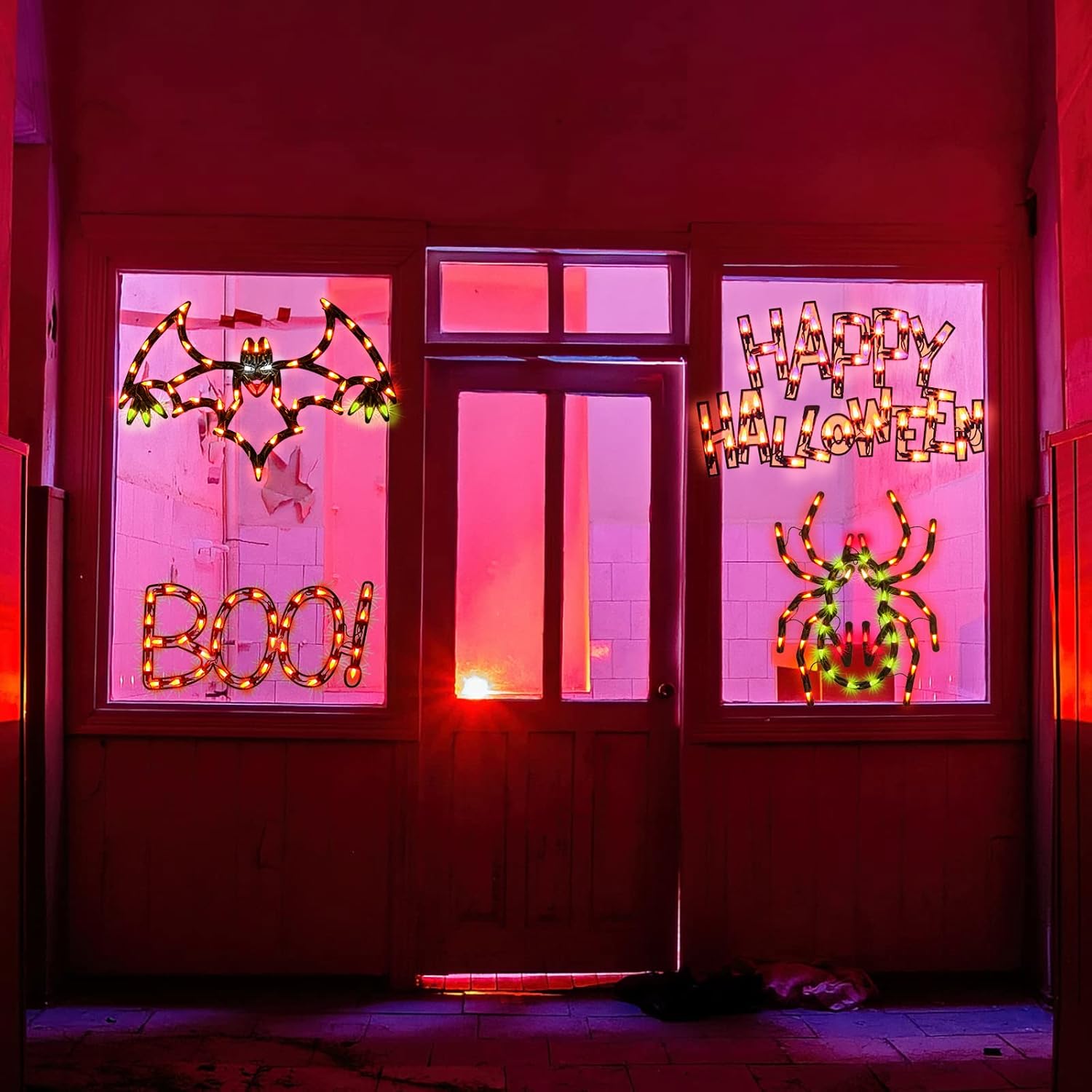 - Wide Applications: You can display the Spider,Bat,Boo and Happy halloween window lights on window, wall, tree, fence or any other place indoor outdoor you want to decorate with good waterproof performance, ideal choices for haunted houses, Halloween party, theme party, Halloween scene and so on.