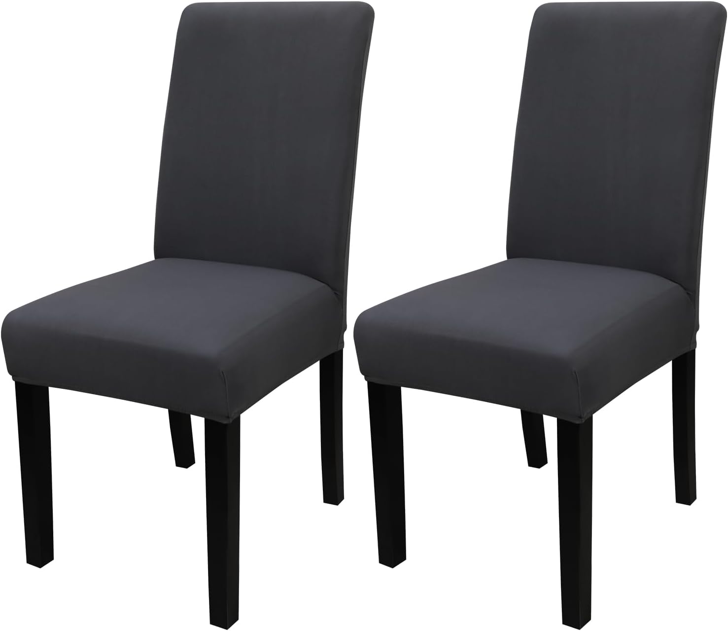 JQinHome Dining Chair Covers Dining Room Chair Slipcovers, 2 Pack High Stretch Removable Washable Parsons Chair Slipcover for Home Party Hotel Wedding Ceremony (Grey)