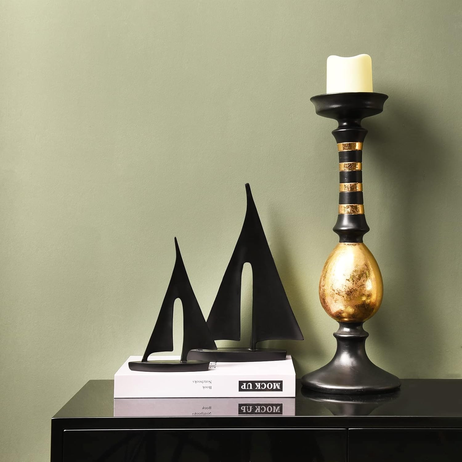 Modern Sculptures Home Decor, Sailboat Decor Ornament, Boat Decorations Statue Decor, Art Sculptures and Statues, Sailboat Gifts Home Office Bathroom Shelf Decor (Black-2 Pack)