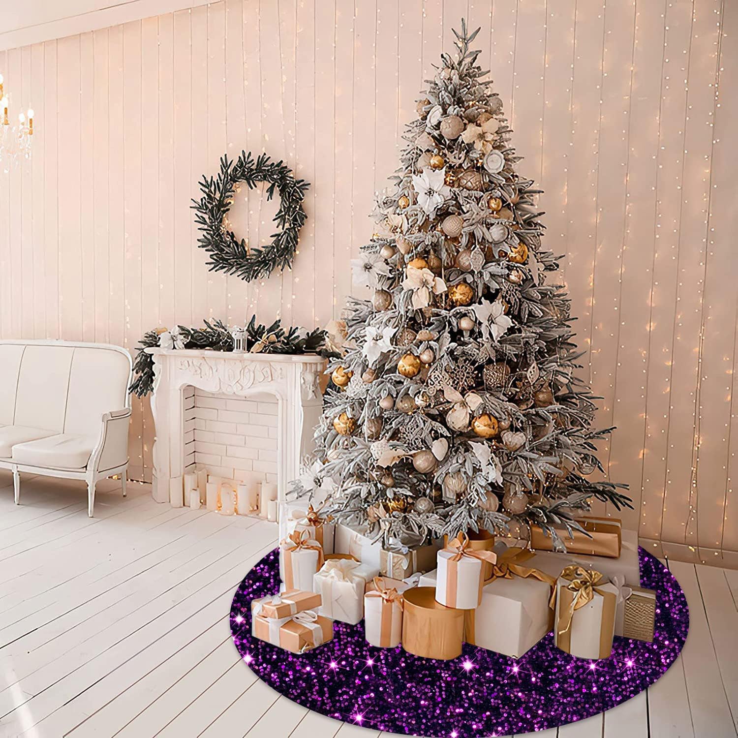 - ❄️【Size Detail -Sequin Tree Skirt】You will receive a 46 inches diameter purple glitter sequins tree skirt, fits under 8 foot tall trees. You can put some gifts, Christmas boxes, christmas ball on the xmas tree cover mat. The sparkle velour Christmas tree skirts is perfect for decorating your home and become part of your holiday tradition.