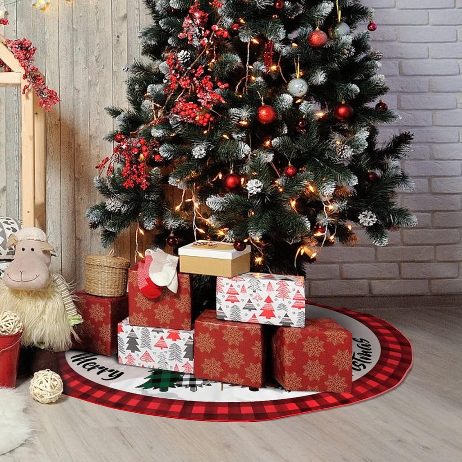 - 🎄 【Idea Gift】: Perfect present for christmas design lover. This retro christmas tree skirt make a wonderful decorations for your christmas tree at home, school, store, office, supermarket etc.