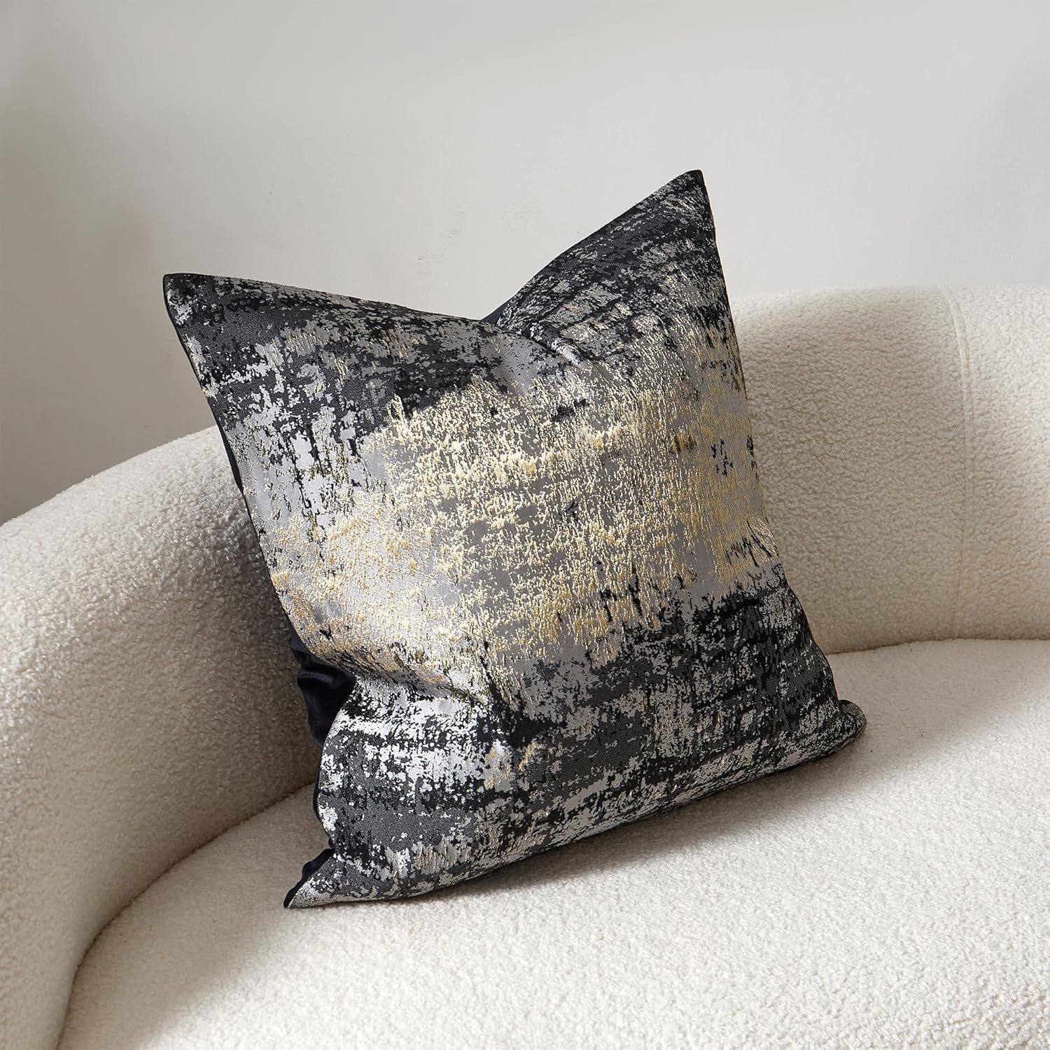THE-TINOART Charcoal Gray & Black Pillow Cover 20x20 - Gold Embroidered Luxury Jacquard, Modern Reversible Throw Pillow Cover for Sofa/Bed, Velvet Backing