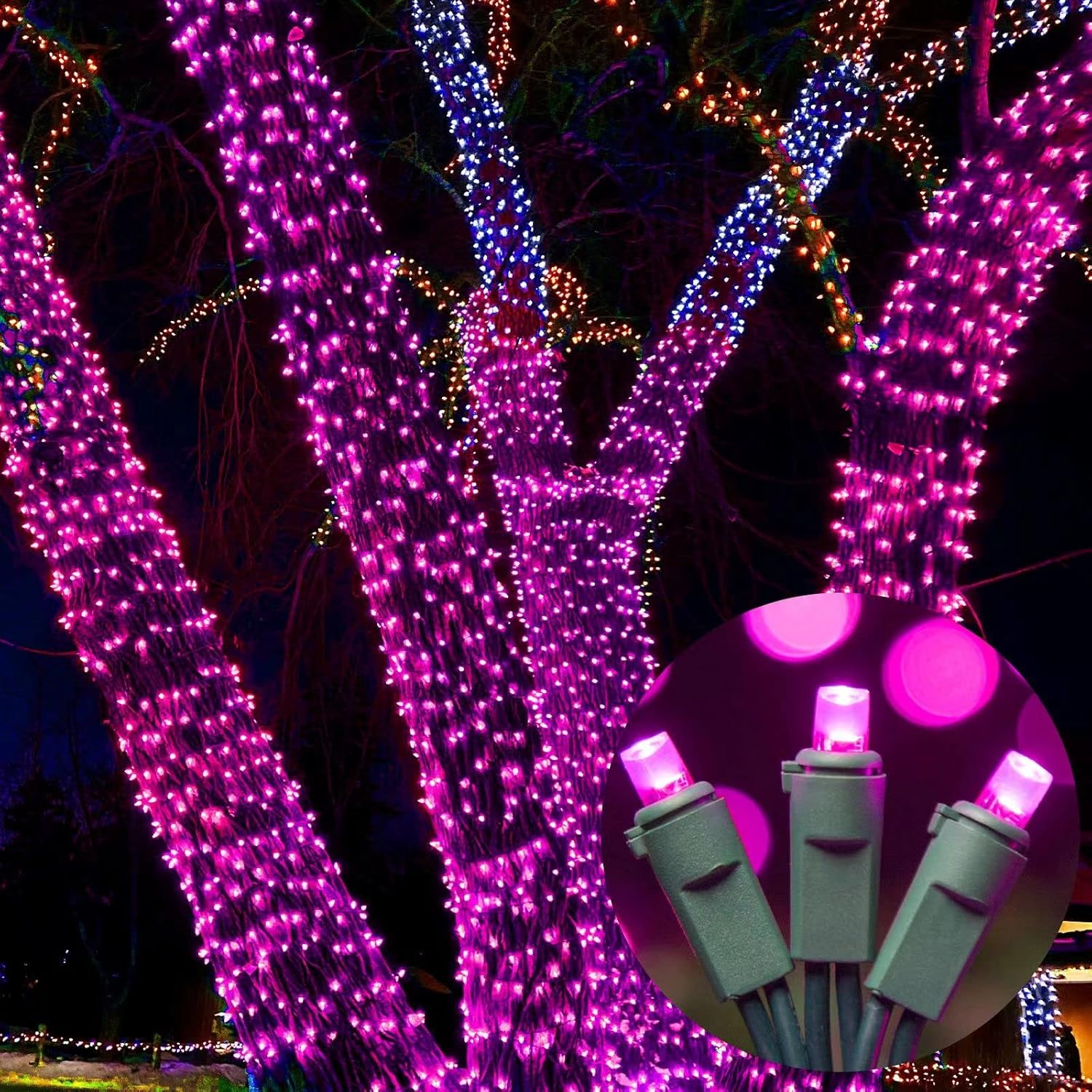 - 5mm LED Christmas Lights: 100 counts warm white 5mm wide angle stable LED string lights spaced 6.3 inches apart with green wire. 7.1 inch leads have a stackable male plug and 5.9 inch tails have a female plug for easy end to end connection.