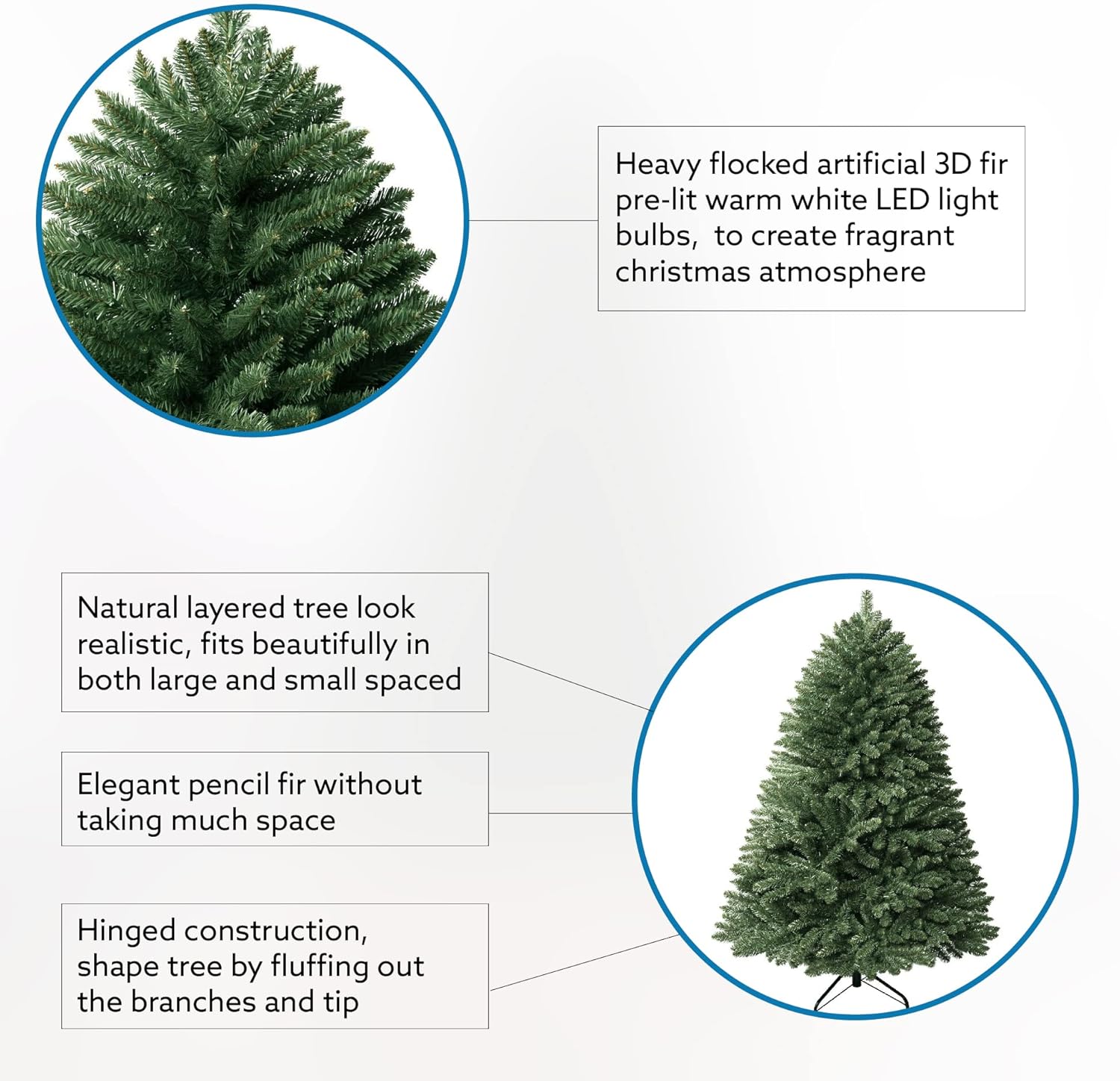 - EASY TO ASSEMBLE : Our Spruce Christmas Tree features hinged branches, making assembly and disassembly very convenient. The Branches fall easily in place for fluffing and are easy to fold back up for storage. Our Proprietary Packaging ensures the safe delivery of the christmas tree to your home.